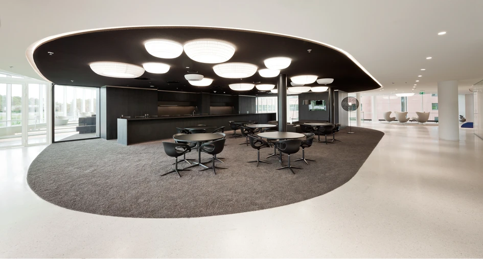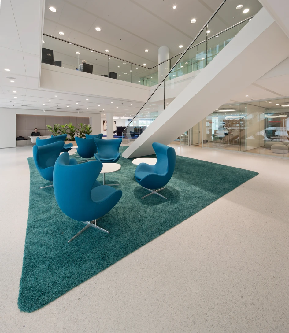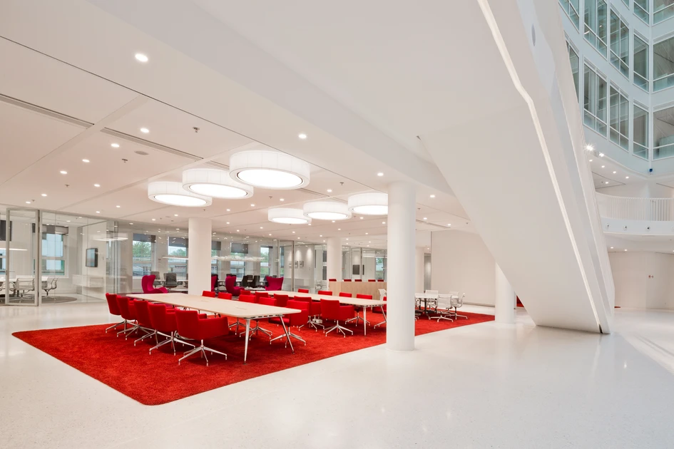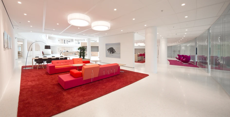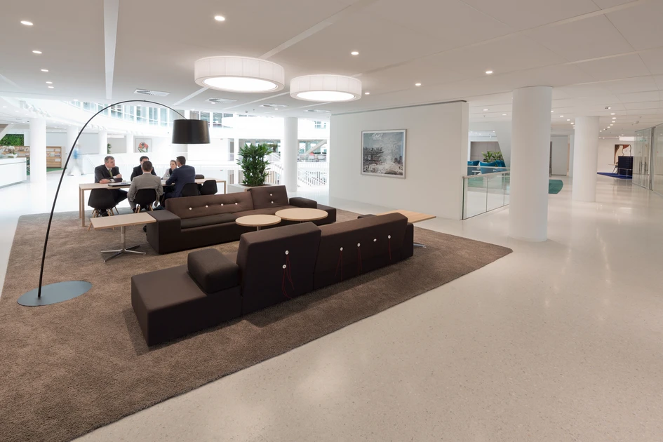 The design gives employees a wide choice of places to work and meet, which means a flexible working environment without being fixed to one working desk. This reduces the monotony of the office environment and maximises creativity and the potential for innovative thinking.