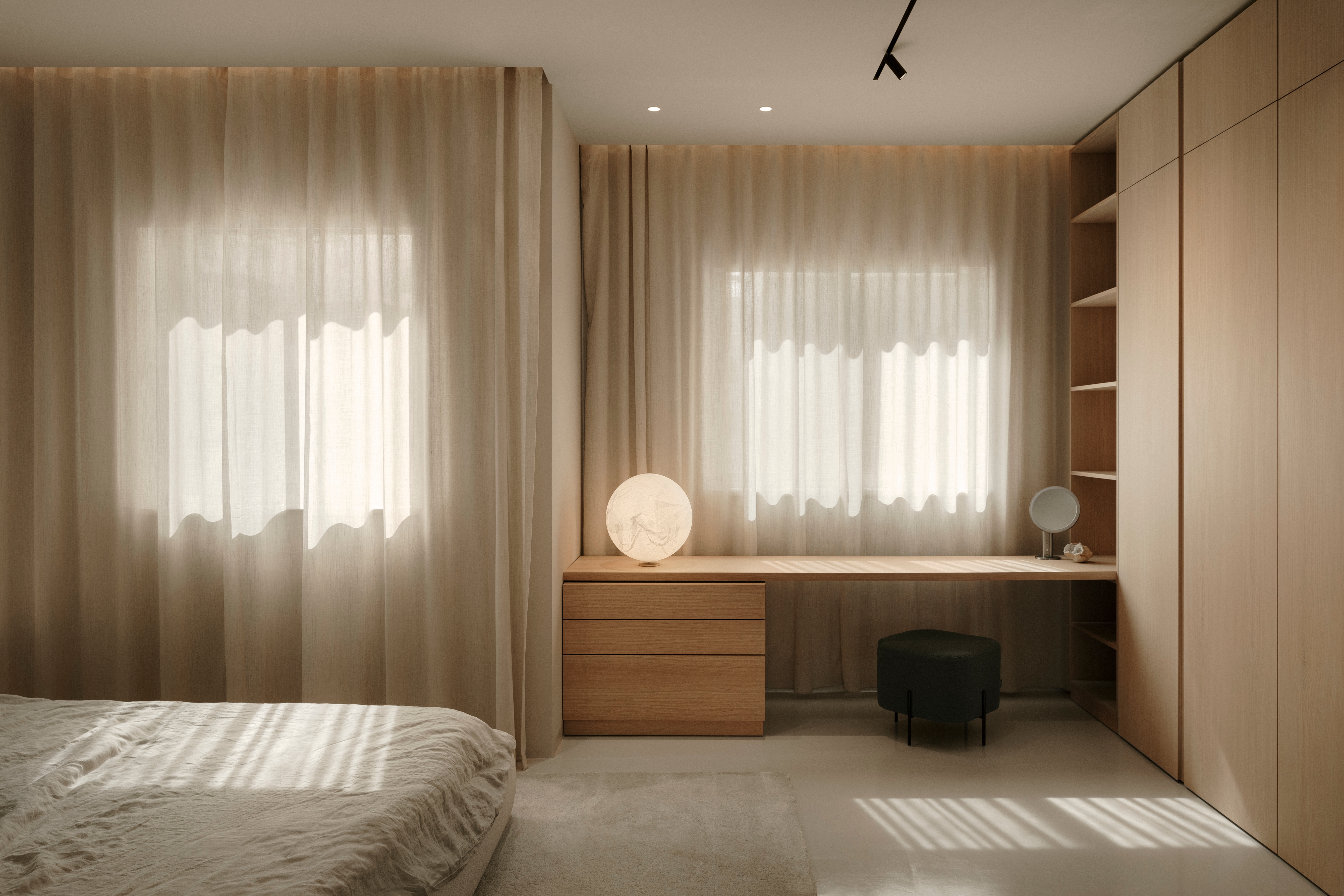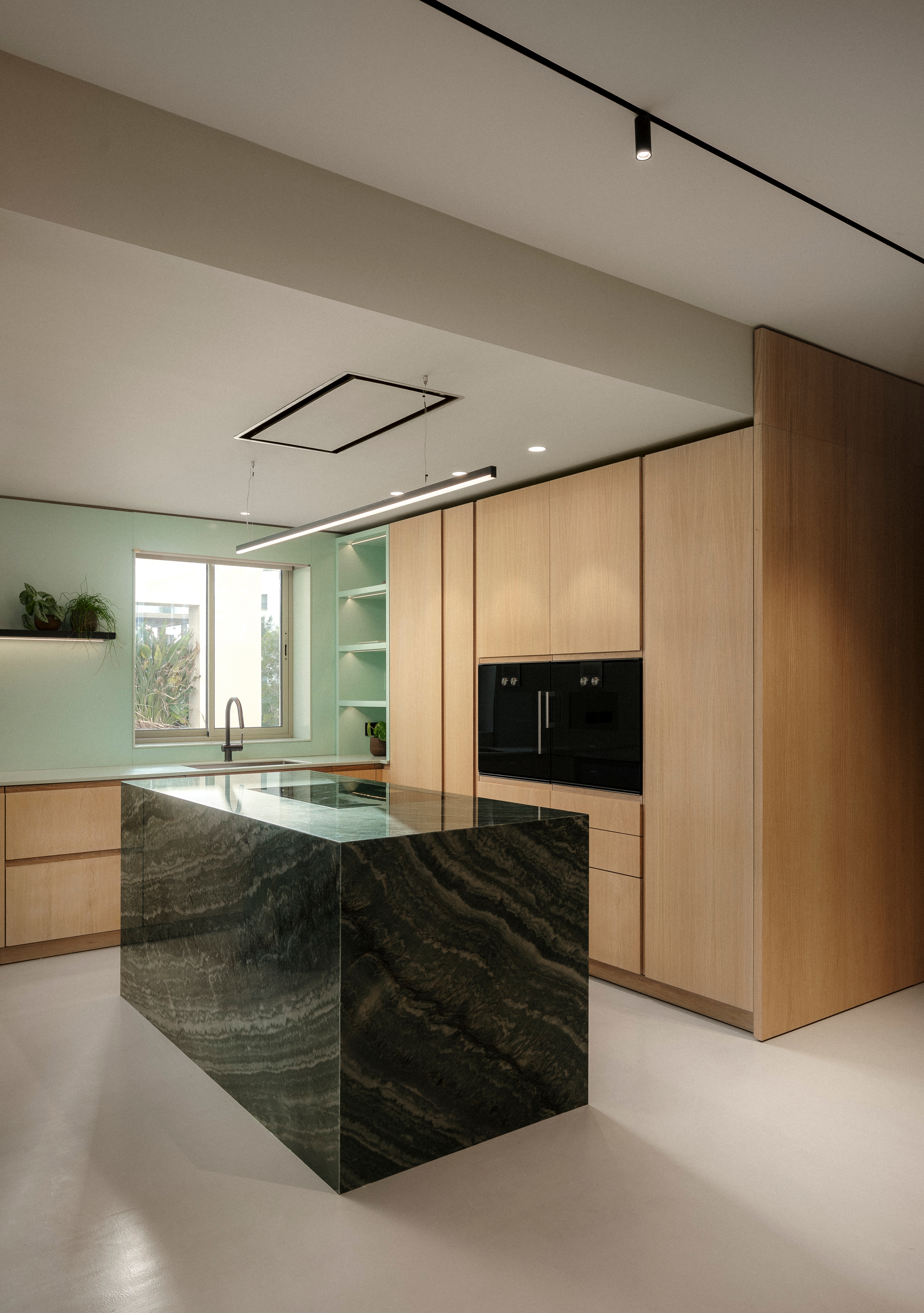 Grün Haus redefines the balance between tranquillity, functionality, and contemporary architectural expression, seamlessly integrating storage solutions while maintaining openness and fluidity. Designed to meet the evolving needs of a modern family, the project harnesses natural light, enhanced by carefully selected materials that diffuse and reflect illumination, creating a serene and inviting atmosphere.