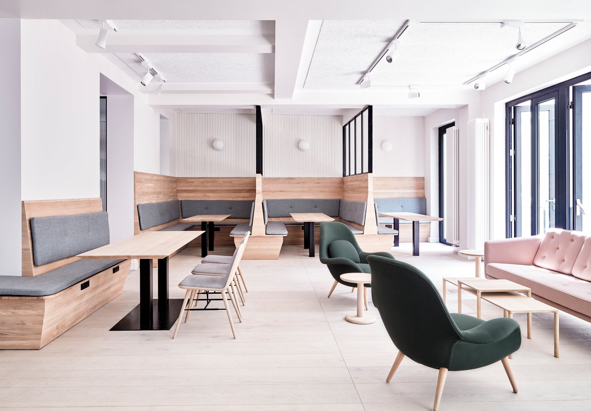 A variety of light hues and tactile surfaces, as well as an exciting product mix featuring both classic and contemporary designs from designers such as Børge Mogensen, Jasper Morrison and Space Copenhagen, were crucial ingredients for Hermann’s architects in achieving the desired atmosphere. Fredericia’s interior experts provided advice and coordination on the final aspects of the project.