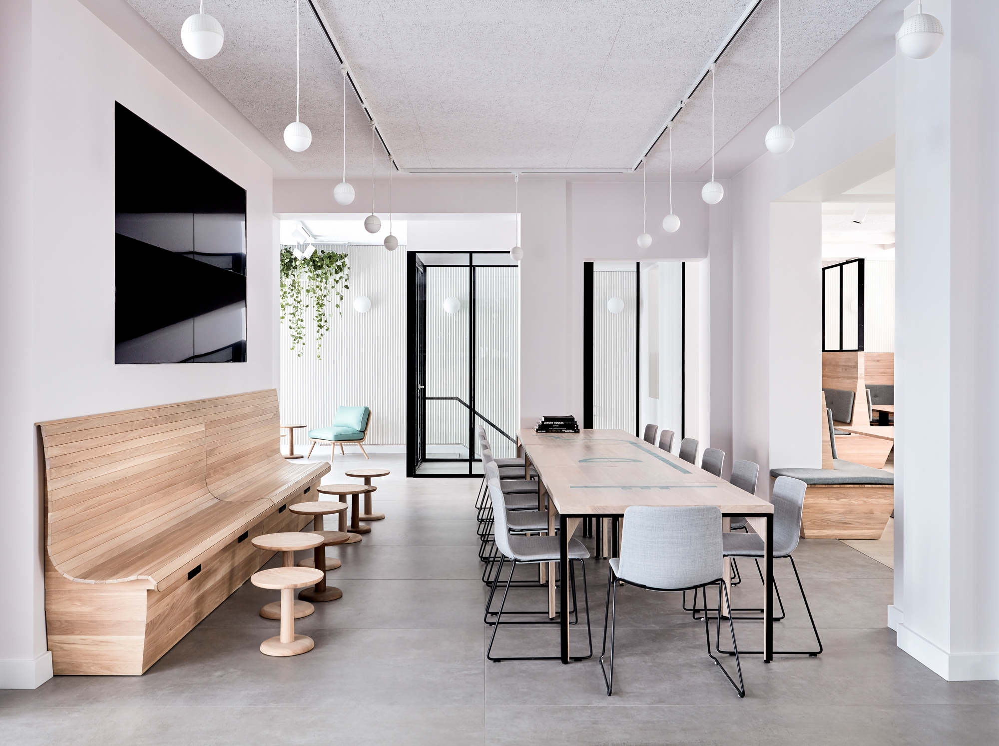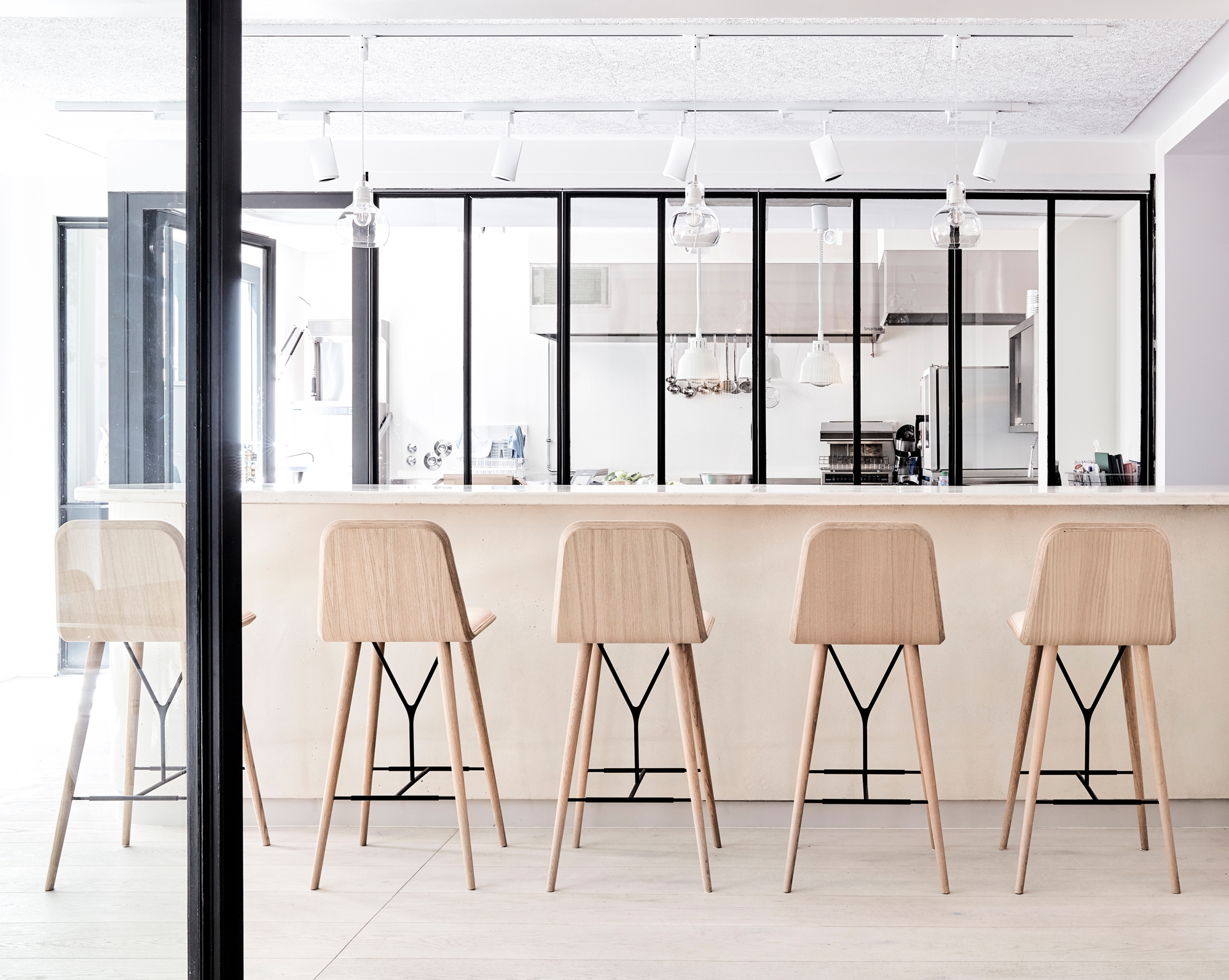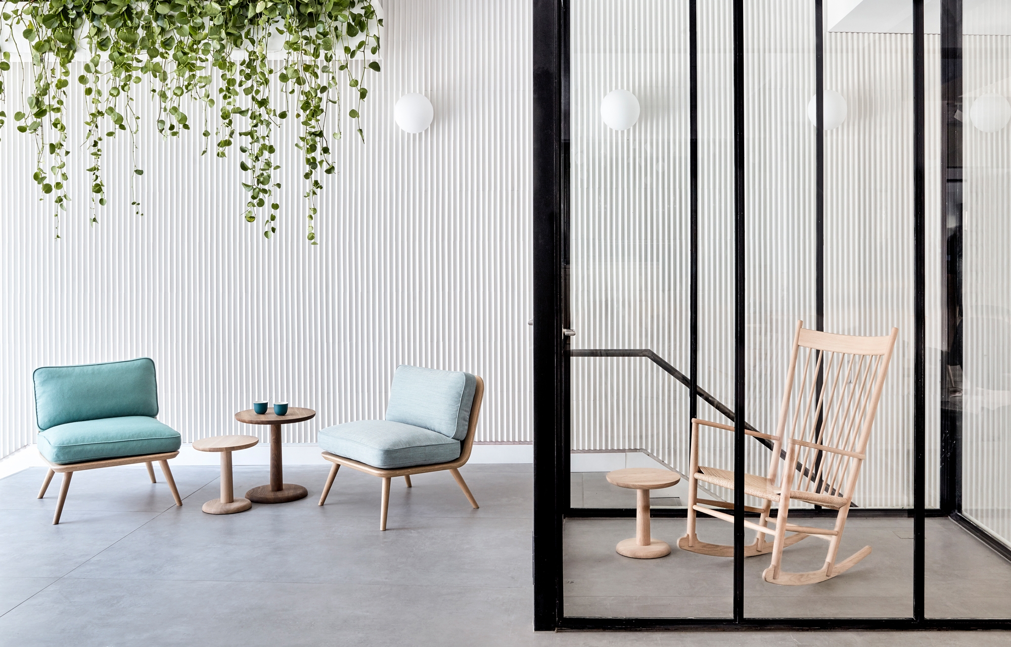 Fredericia pieces found in the project: Swoon chair, No. 1 3-seater sofa, Pato Lounge chair, Pato chair, Pon side table, Spine lounge chair + stool, J16 rocking chair, Piloti, Spine barstool.