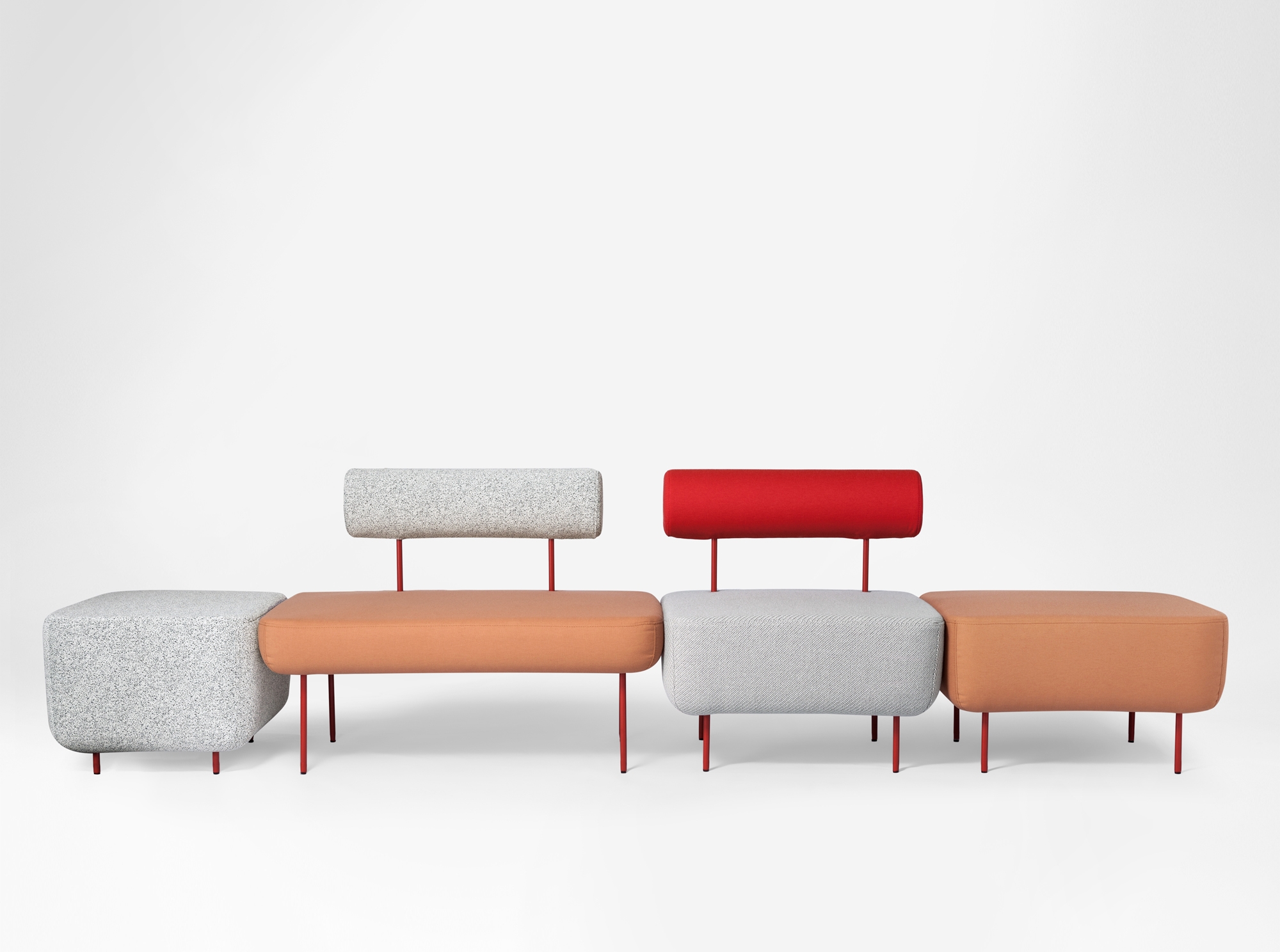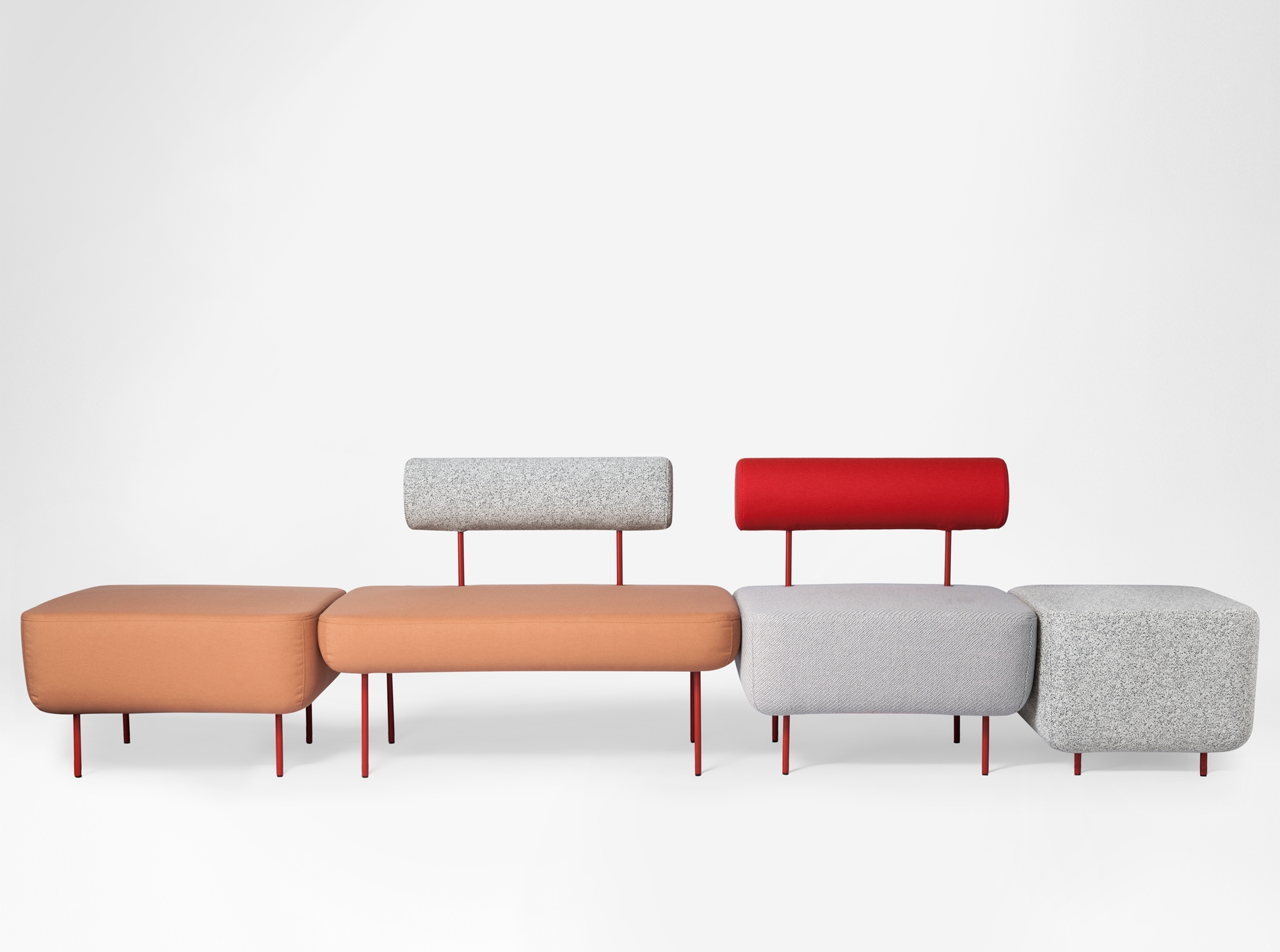 The Hoff is a playful, colourful and modular sofa. Created through a custom - made textile collaboration between by Kioshi yamamoto and Morten Jonas. Mix and match different sizes and colours to get the look you desire. Material: steel wood base and textile.