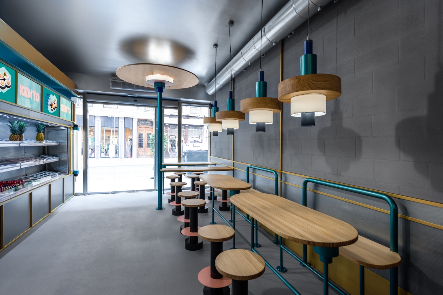 Although the past was interpreted, in every moment it has been the aim to create an avant-garde identity. To be highlighted is the fact that Kento mainly offers take away food, although a small space inside has been set up to provide the local visitors to take their food immediately inside. Masquespacio through this design strongly shows their capacity to adapt to each project and offer custom-made solutions with a unique character for each space.