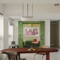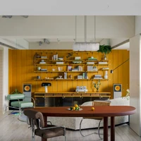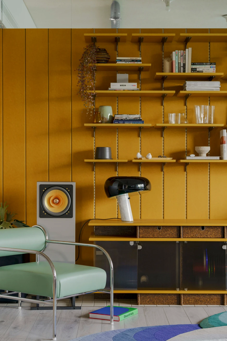 To complement the owners' key furniture, yellow, blue, and green were chosen as the primary accent hues. These colors help define areas such as the living room, kitchen, and study. Meanwhile, both the color schemes and design details are thoughtfully layered within the spatial framework, furniture forms, and layout strategies, cultivating an overall sense of harmony and balance.