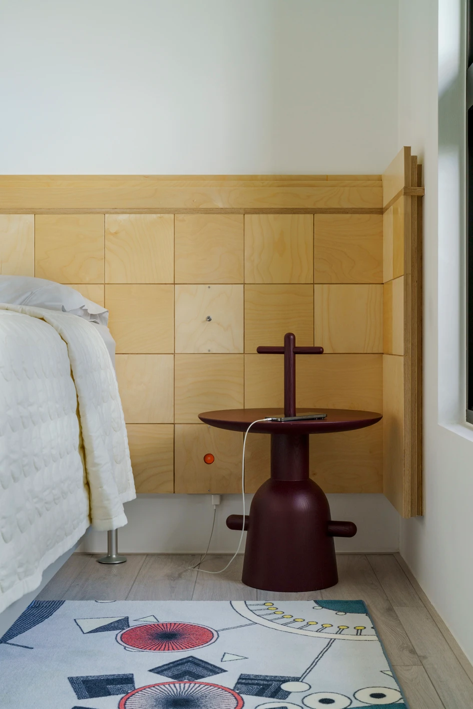 Material choices were made to harness each element's unique characteristics and expressive potential: the stainless-steel folded countertop in the kitchen, stain-resistant tiles, and a birch-veneer headboard all showcase how, in this project, design is truly an art of "putting the right things in the right place."