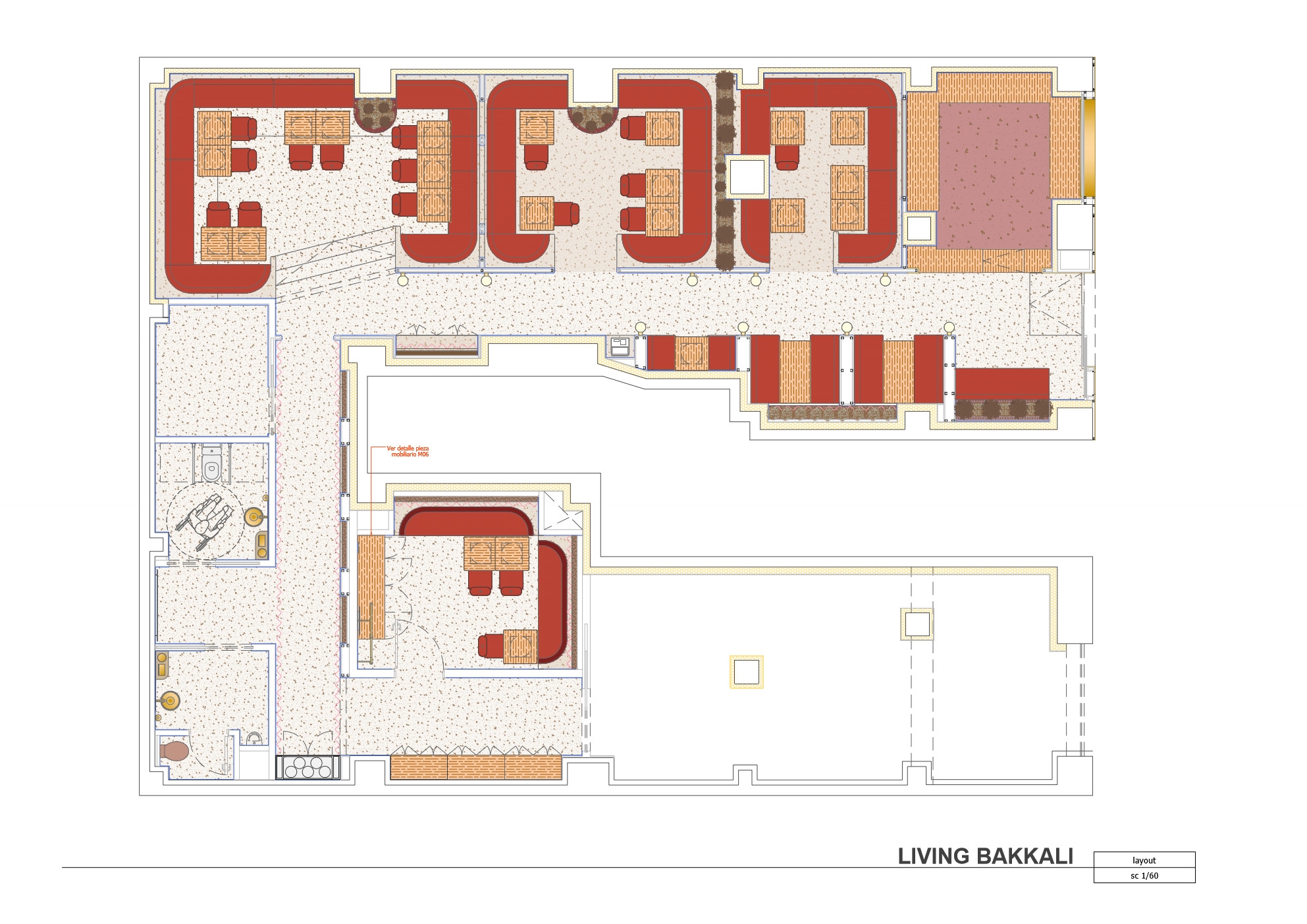 This way the project initially is presented through a layout of the different areas that recreate small corners like if you were at the fantastic Orient with its lounge seats that invite the different diner groups to relax and connect with each other, while they enjoy the creative dishes from Living Bakkali. At the same time the diner will be curious to discover what the other corners of the place hide, partially revealed through the different windows in the style of Arabic architecture.