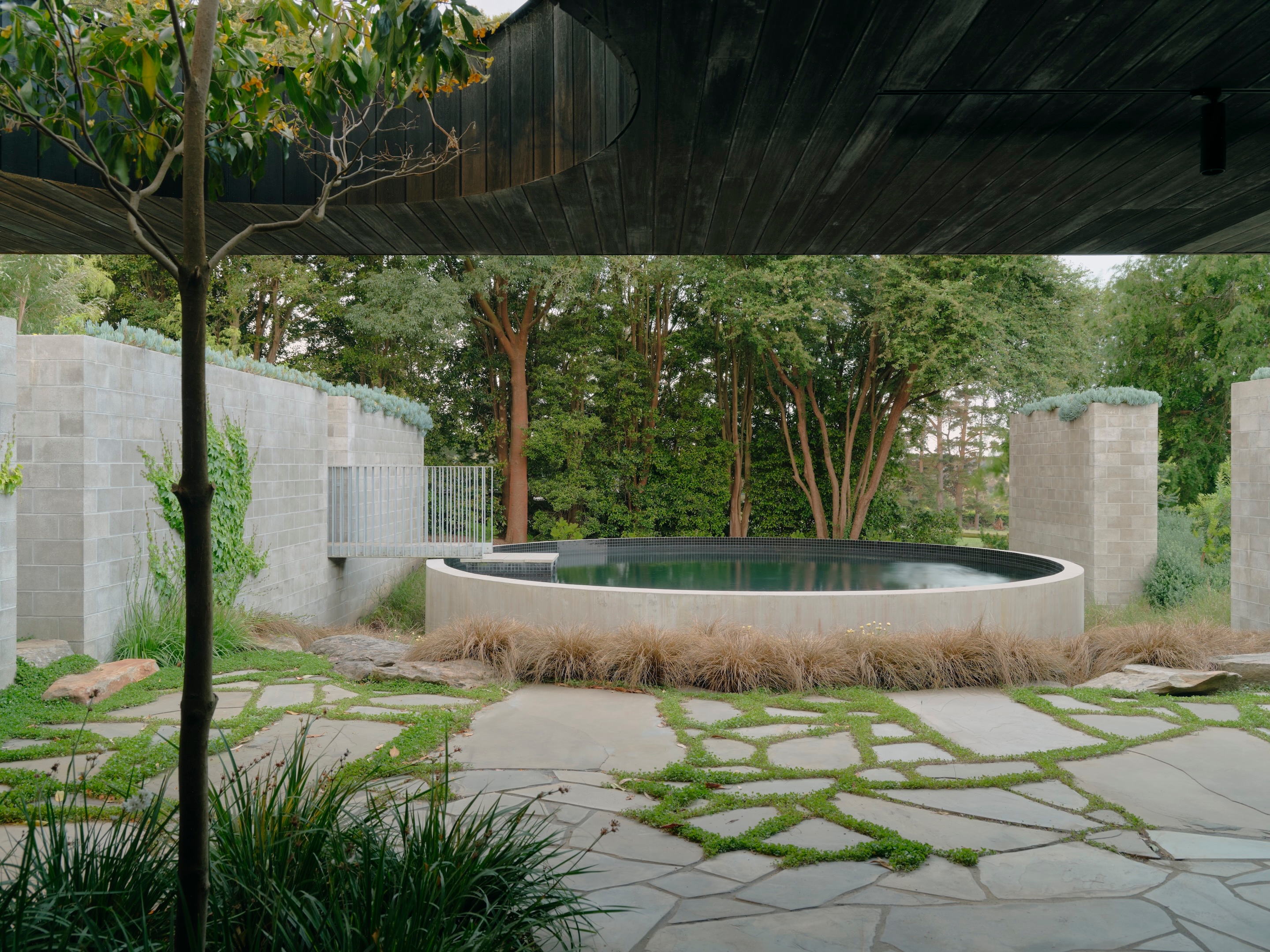 This is a constant theme: The architecture recedes and the building acts simply as a lens from which to experience the landscape. Every room looks out onto a garden. Wherever possible, the design and siting was informed by the existing trees. The old driveway entry avenue of Elms was retained and repurposed as the main pedestrian entry sequence. The old windbreak of lilly-pillies to the north of the pool was retained to create a ‘full stop’ to the house, a second, softer courtyard with a wall of trees as an edge.