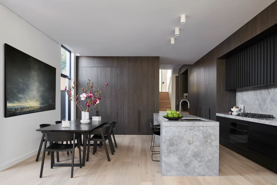 Simplistic Residence is a cosy and moody haven nestled in the heart of Ryde, Sydney, Australia. This multilevel duplex split over 3 levels, unveils spaces where simplistic charm intertwines with modern living, offering an experience that captures the essence of contemporary living with a slightly masculine edge. With its inviting facade and thoughtfully designed interiors, Simplistic Residence is a harmonious fusion of robust elegance and minimalist living. Lead designer Rose Sorkheh from The Stylesmiths, was guided by the client's affinity for a dark and contrasting colour palette, the mission was to manifest this aesthetic in every component of the project.