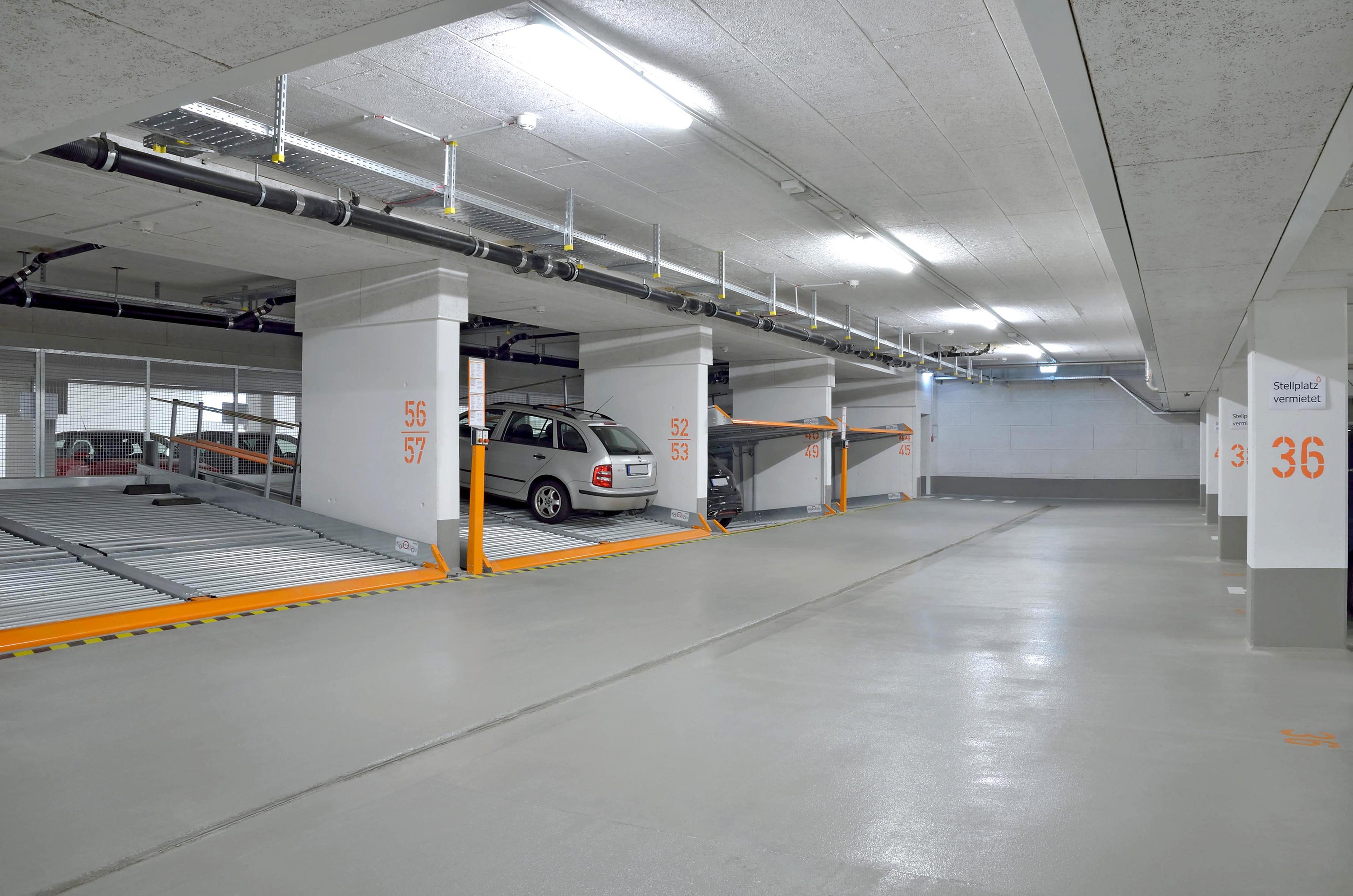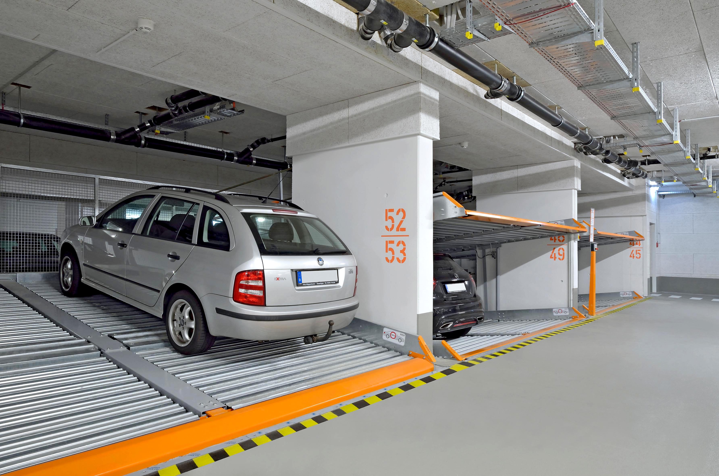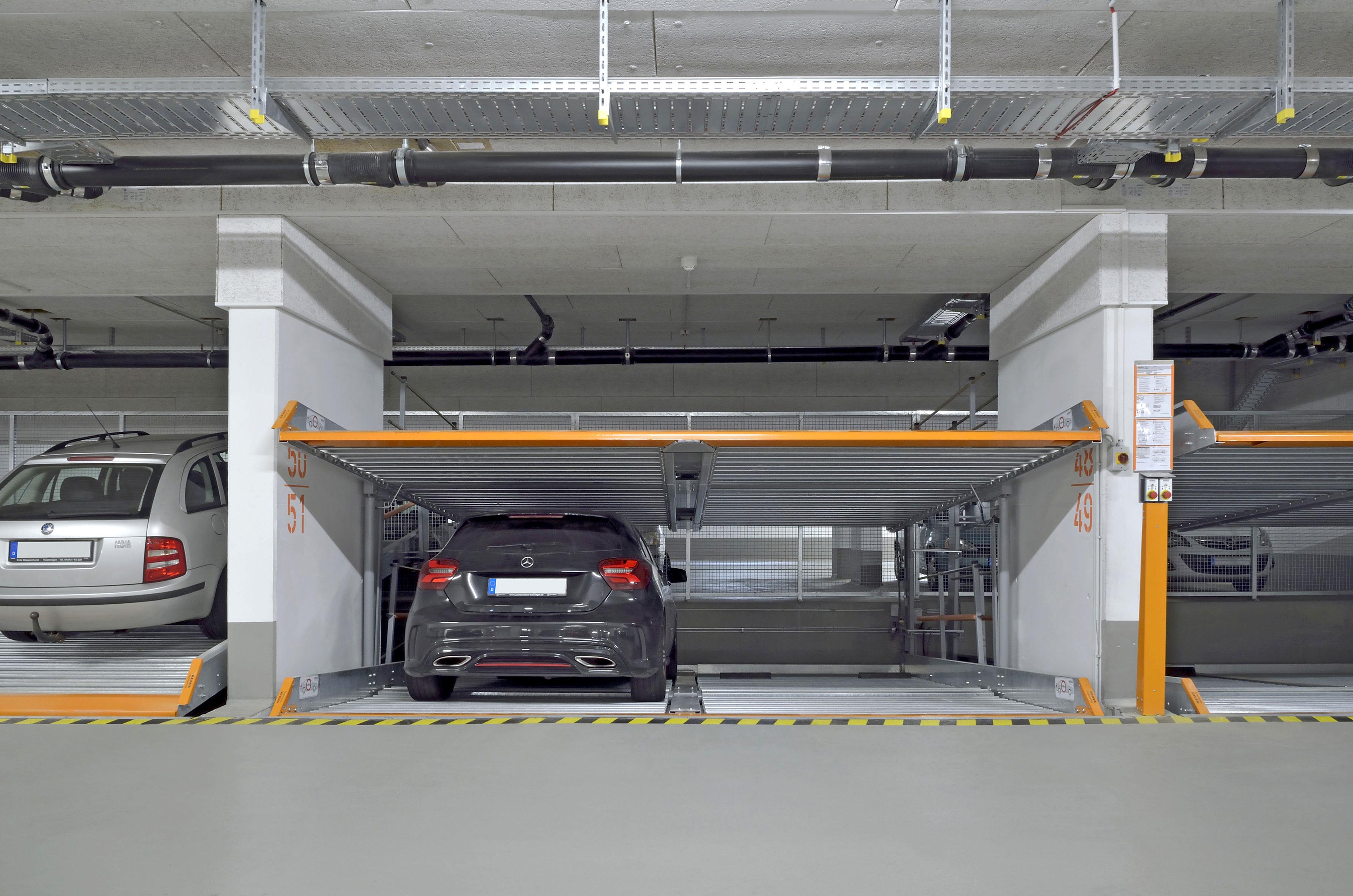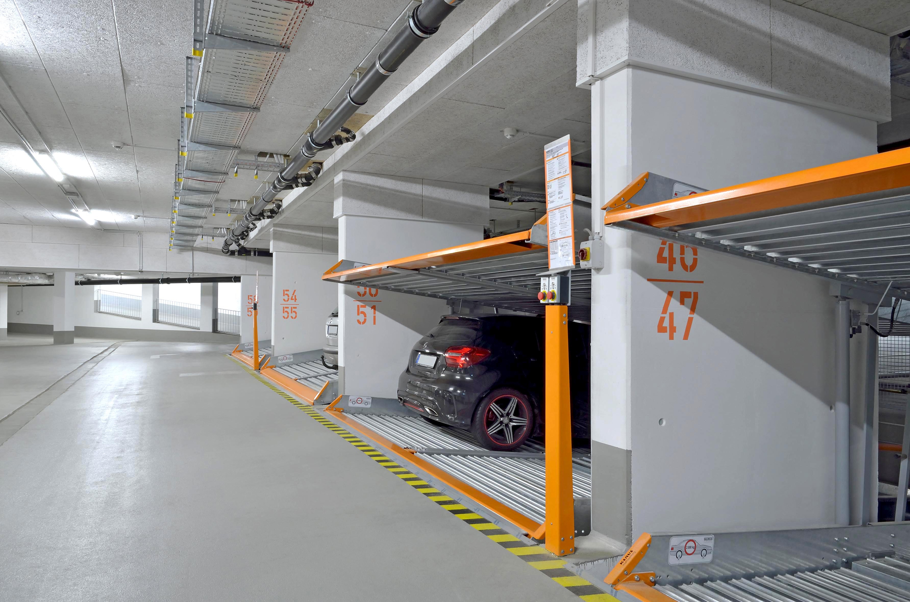 Two examples in Neu-Ulm show how intelligent use of space can create additional room for outdoor areas while still providing car owners with comfortable and safe parking. And what is the most intelligent way to use space? With vehicle parking systems from KLAUS Multiparking. In collaboration with the general contractor, a suitable parking solution was planned for two properties in Neu-Ulm – the B&B Hotel and the UniApart student hall of residence. As a result, the number of available parking spaces was doubled from 43 to 86 by means of our MultiBase 2072i and 2042 parking systems.