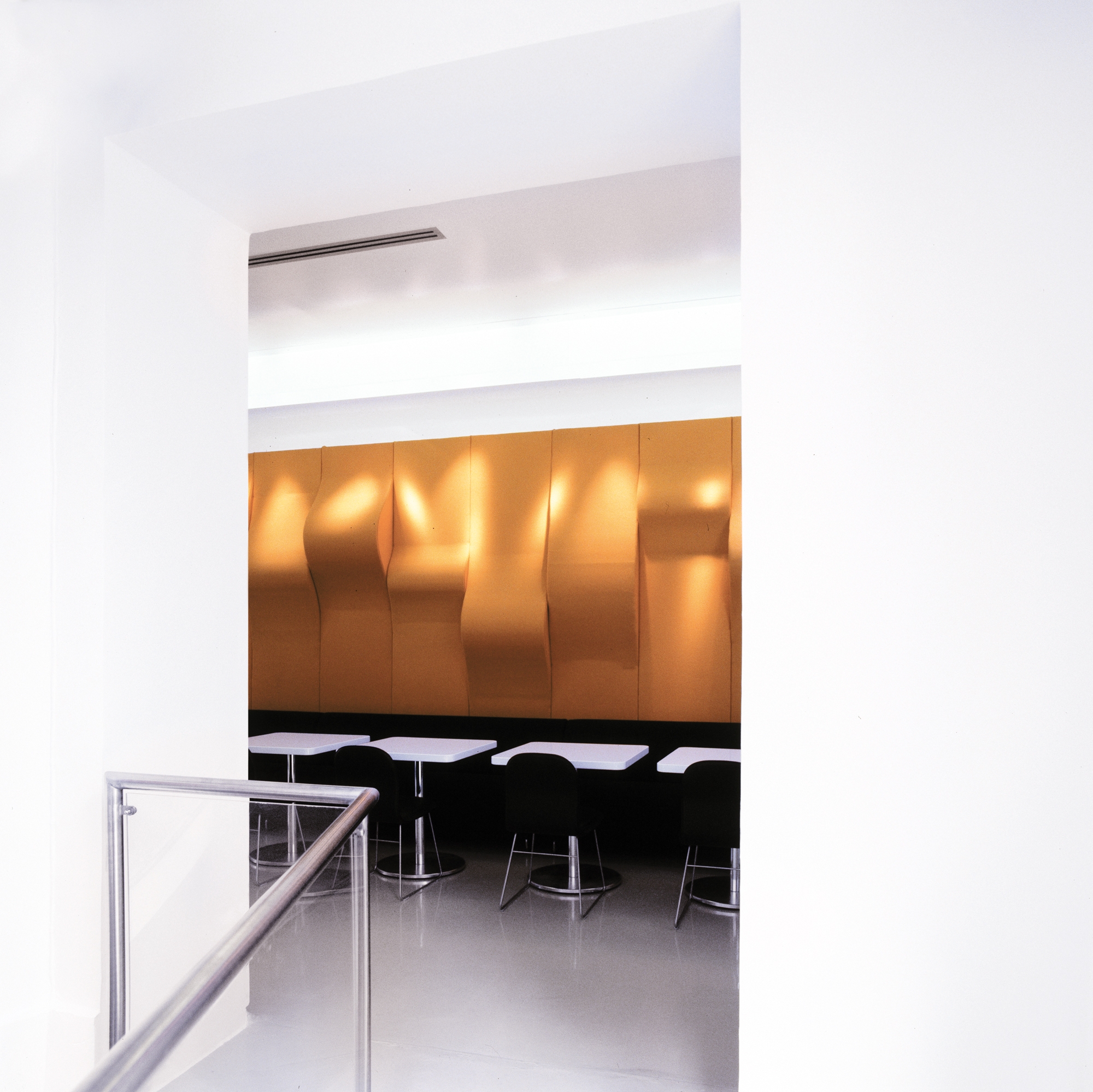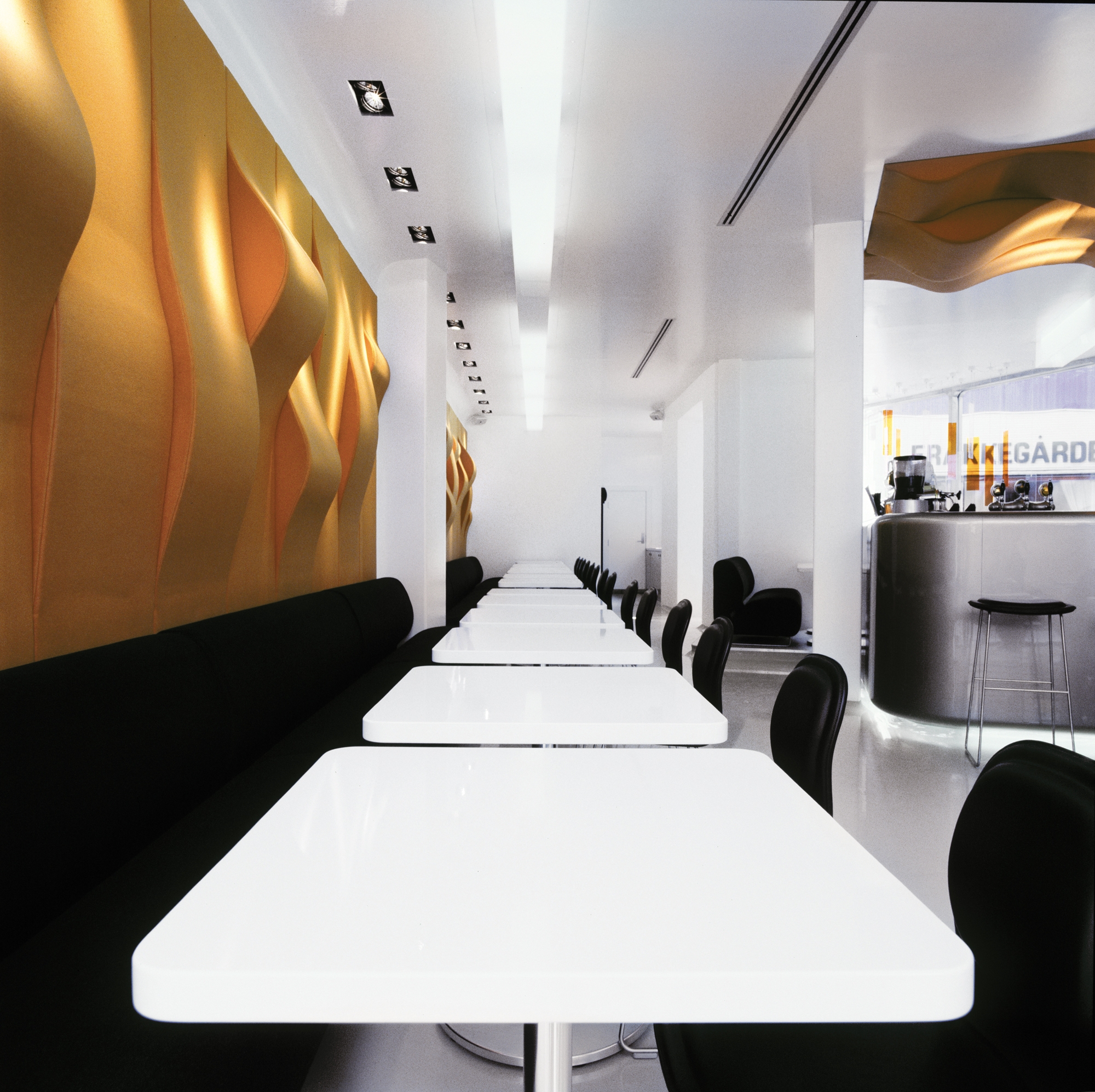 A vibrant concept café with curvy and voluptuous bright orange walls which provide a modern setting and cosy feel. Applying a holistic design approach the space evokes all senses. From the interior layout to the food, drinks and music; everything has been given special attention.