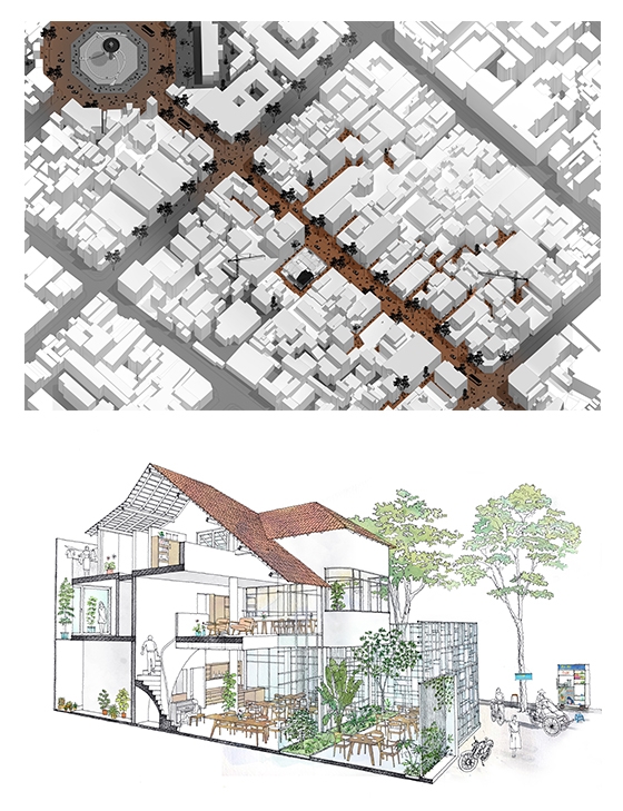 The house poses as a good case study for any house in “hẻm”. As the city is populated with countless network of alleys, we believe, just by utilizing one of the principle represented in this house, the urban context of this city would change dramatically, starting with the easiest applicable principle, tropical garden in the alley. Imagine an alley fill with tropical plants, solid walls is replaced by soft fence, and lively interactions among neighbors. It is an opportunities to refresh the people’s perception toward their living experience that encompass the overlapping relationship among the interior, the envelop, the garden, the alley, and the neighbors.