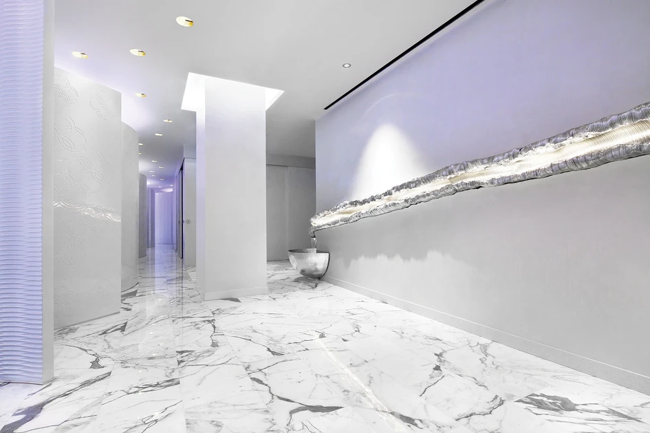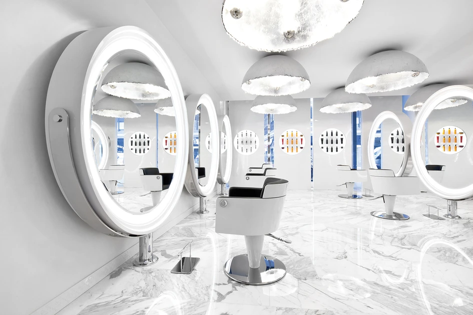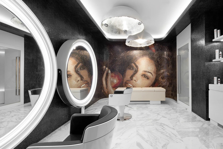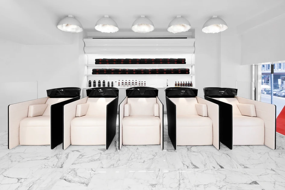 Special VIP spaces are dedicated to exclusive clients, made unique by the innovative wash-unit Monolithwash, which combines the functions of shampoo station of extreme comfort as well as of a precious bed for massages and treatments.