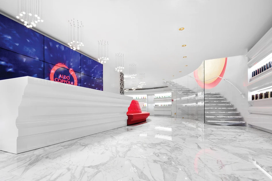 Here comes the exclusive pictures of the majestic Aldo Coppola new flagship salon “The Kingdom of Beauty”, located in Milan in Corso Europa, a short walk from the Duomo, which opened on December 9 2014.