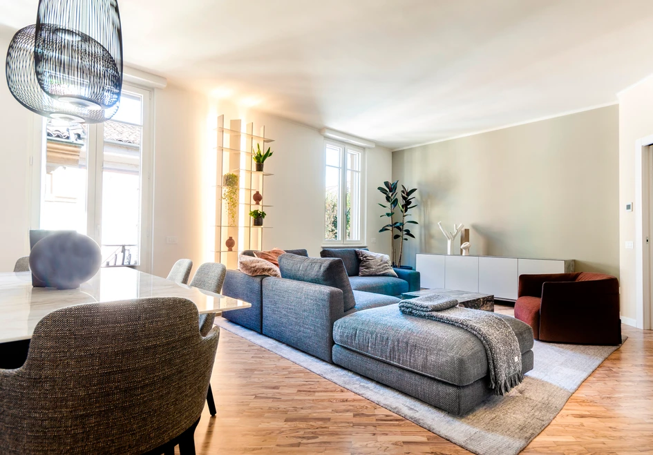 In a historic building in northern Italy, an apartment has been renovated to meet the owners' desire for a fresher, more contemporary atmosphere.
