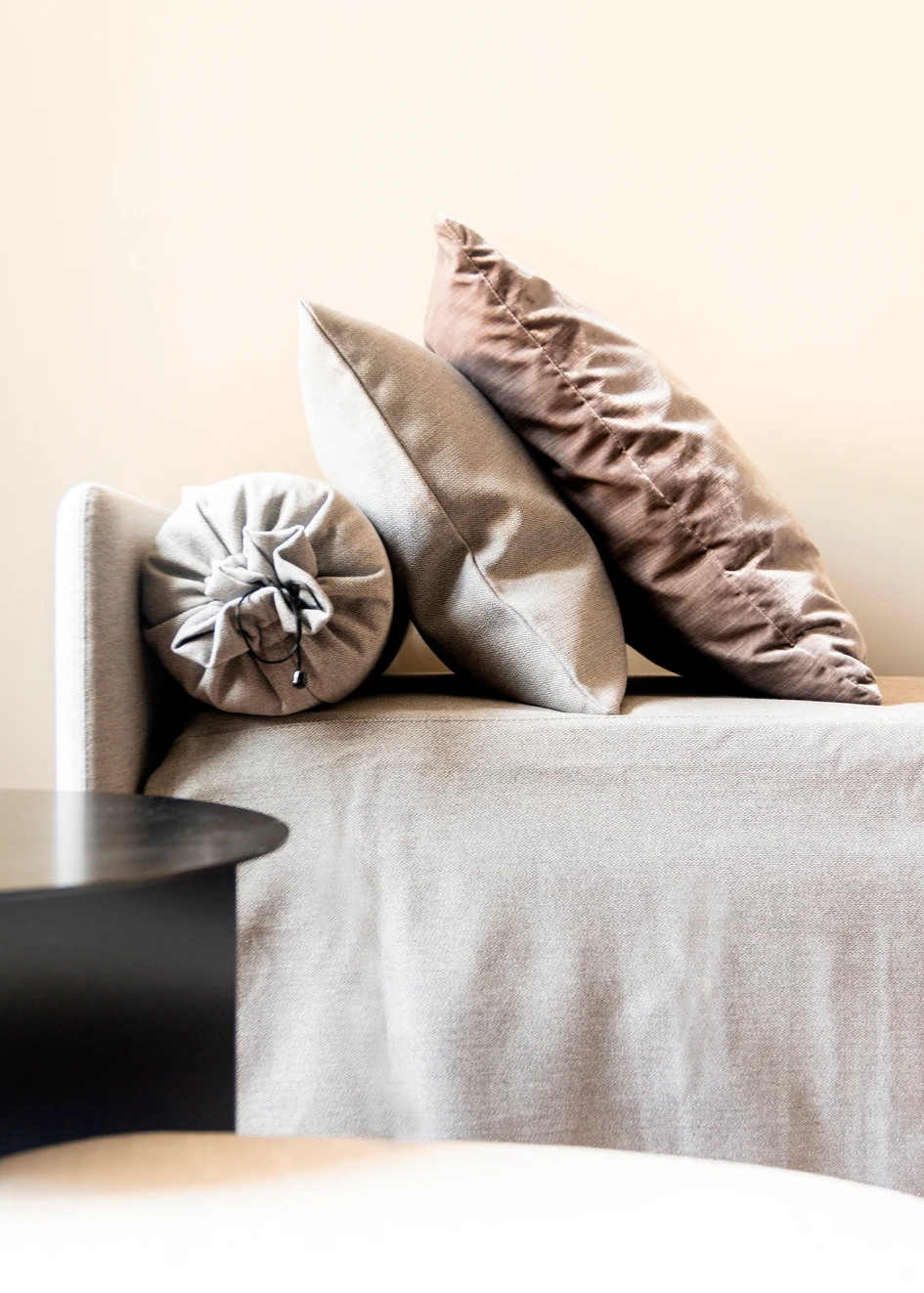 The living area is spacious, bright and balanced with a subtle contrast between cool and warm colours. The modular sofa is MyPlace; the CCLight bookcase is a light source that ideally replicates the natural light from the large windows.