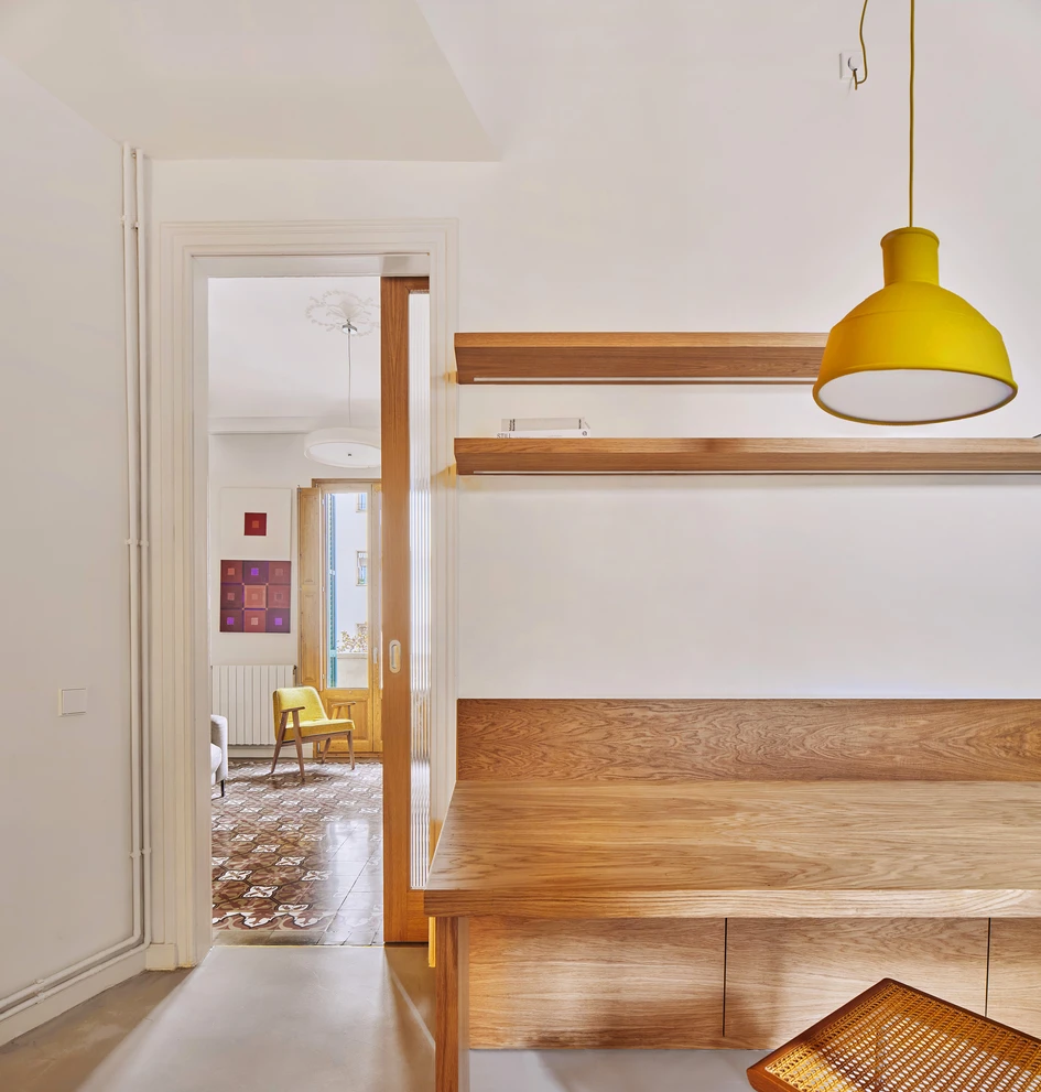 This project presents the interior renovation of a space located in a traditional catalan modernist house on the mountain of Montjuic, Barcelona. It is a listed house, full of architectural details that had been pushed into the background after some tasteless renovations made by the previous owners. The objective was to rescue the original values of the house and integrate them with a contemporary intervention.