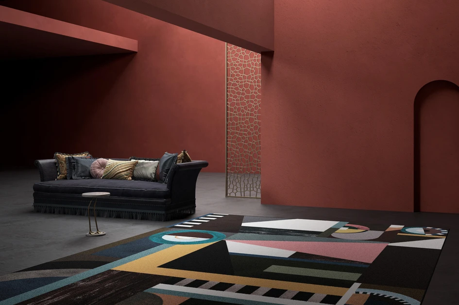 By applying modern art or graphic patterns to rug designs, they can be positioned anywhere and in any direction, but by defining the position of the rug with photography, such as Yo2’s Fantasmagoria rugs, for example, designers can easily direct how spaces are used, bringing homely psychological comfort when seen from a certain point in the room.