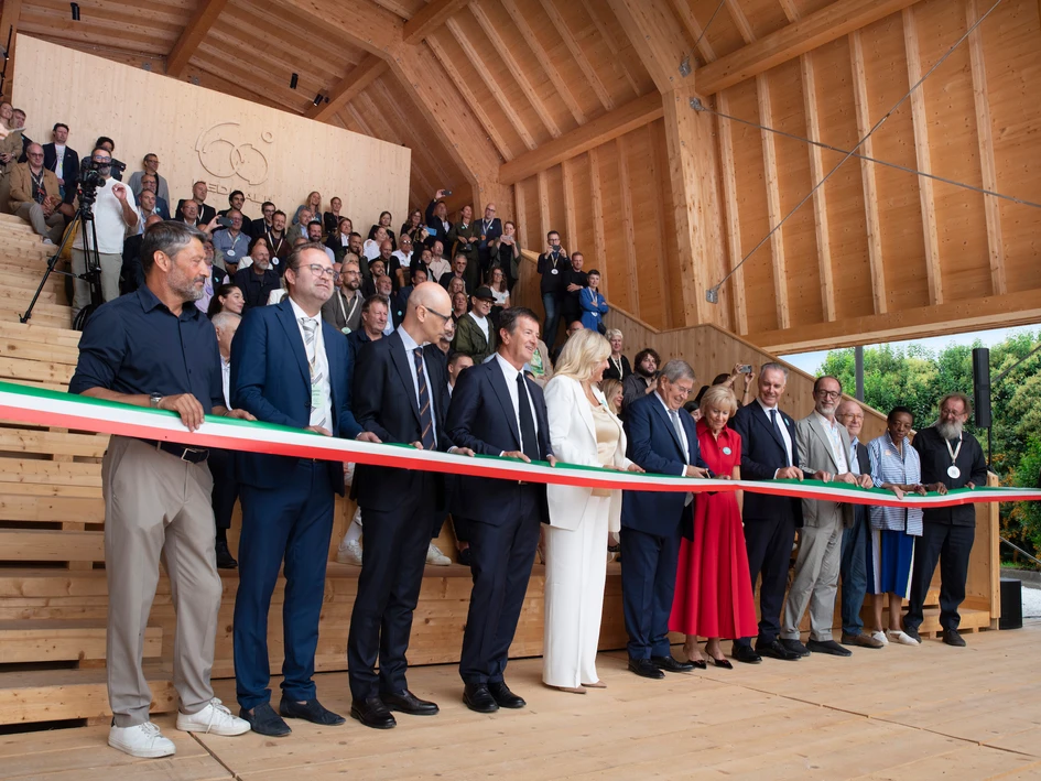 'Without community, there's no sustainability.' So argued Italian architect-designer Michele de Lucchi earlier this month during the inauguration of his new pavilion for furniture and lighting manufacturer Pedrali, which is celebrating 60 years in business. The all-wood-and-zero-glue structure, currently located at the company’s production site in Bergamo, displays a levity that belies its monumental scale. ‘Set on legs, it’s a building for the community that is open at the base,’ explained the esteemed 71-year-old to the assembled guests.