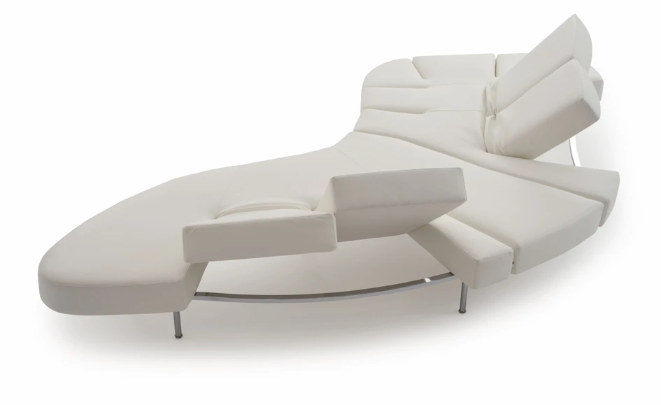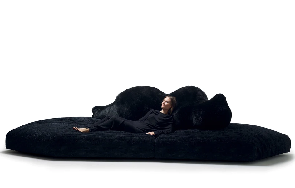 Under Binfaré, some of Edra’s most iconic products have been launched – those that combine bold ideas, commentary on contemporary society and expert manufacture and technical strength. Take the Flap sofa, a form that reflects space travel with its aerodynamic flying saucer shape with flexible dynamic components that adapt to support the body so it feels weightless. Or the Pack sofa, which embraces the animalistic and playful nature of humans with its organic polar-bear-shaped, ecological fur seat rest that completely disrupts the traditional linear form of a sofa and suggests totally new ways of use.