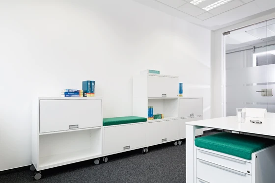 The Icon four-legged table range enables the straightforward creation of large double and group workplaces as well as larger conference facilities. The workplace system, designed by Klaus Michel as far back as 2003, was a milestone in the company’s product development and won the Red Dot Design Award. The stacking box systems M1 and M1.1 offer flexible storage space in the office environment. In addition, they enable the clear structuring of open spaces. The Versa H MiniCaddy not only serves as a mobile storage space in the office, but can also be used as a temporary seat with cushions. With a foldable bow-type handle, it transforms itself into a mini-transporter.