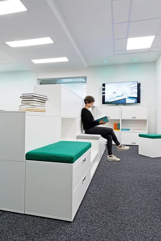Supporting research in this segment is an important focus for the company. Cooperations with innovative partners are of great importance and bring advantages for all parties involved. In 2017, VARIO planned high-quality office furniture for the Fraunhofer Institute for Applied Information Technology FIT in St. Augustin near Bonn. At Schloss Birlinghoven, several double workplaces, a multifunctional middle zone and a so-called “marketplace” were created for the scientists of the Fraunhofer FIT.