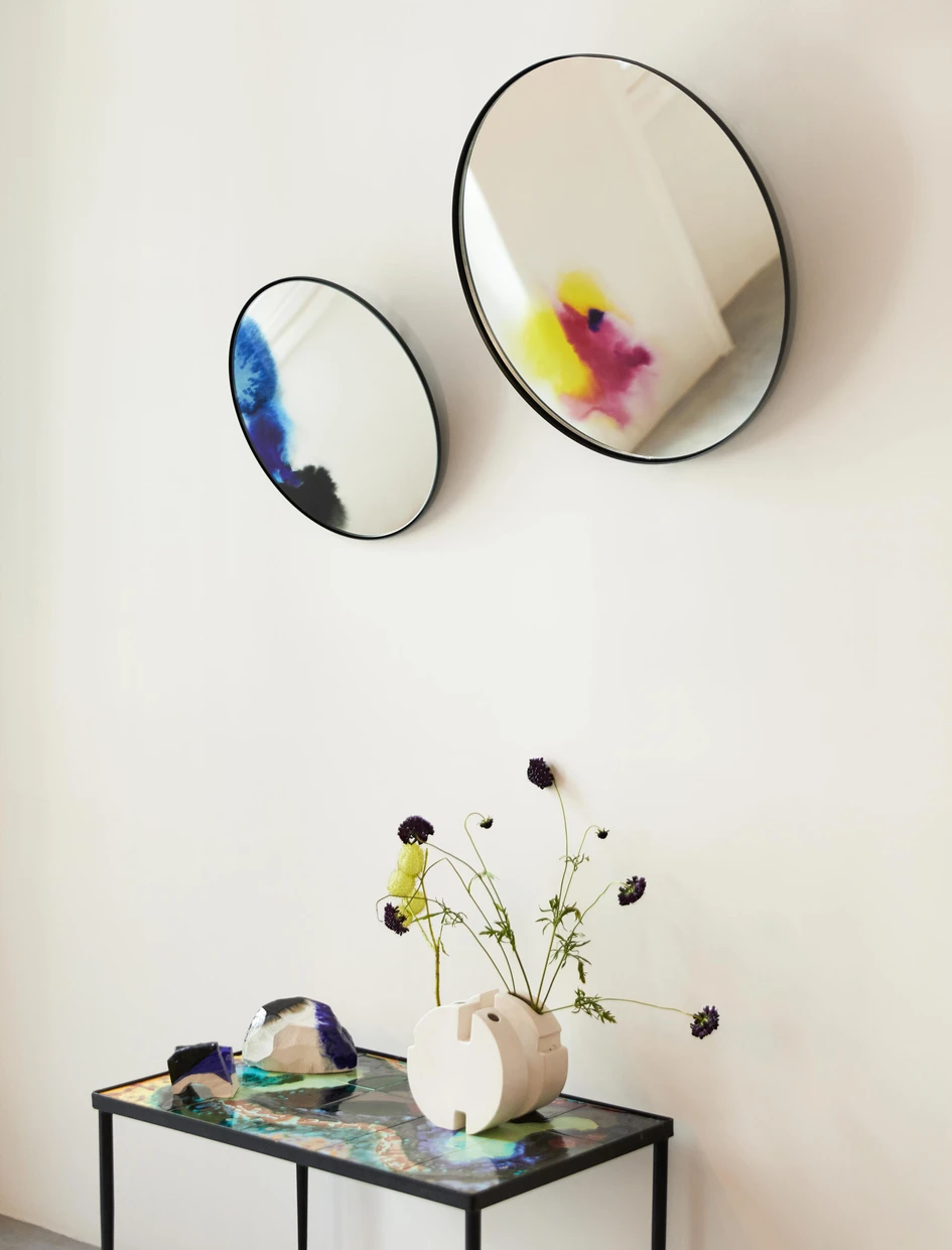 In living spaces, meanwhile, the straight lines of a square mirror often appear above straight-edged furniture like mantlepieces and dining tables. Too many squares, however, can dampen a room’s personality, so round mirrors like Petite Friture’s Francis mirror, with its burst of creativity and colour, offer a contrasting shape.