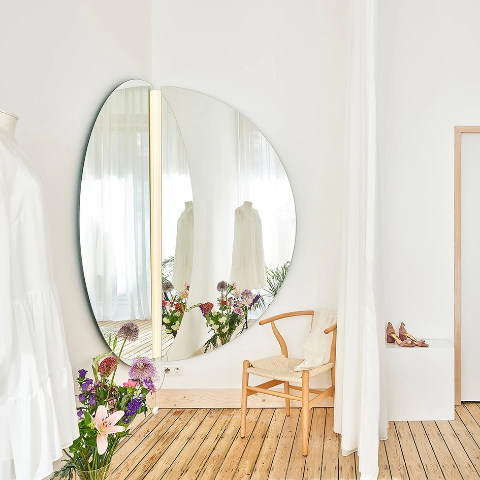 Leaning floor mirrors might look like someone’s run out of Rawlplugs, but full-length options like TATI from ASPLUND give a more inclusive wide-angled reflection from head to toe. Short on space, however, then Deknudt Mirrors’ perpendicular Luna wall mirror gives simultaneous front and side views, while freestanding mirrors like LC 198 from Gervasoni is light and easy to move around, with rear hooks to line up alternative outfits.
