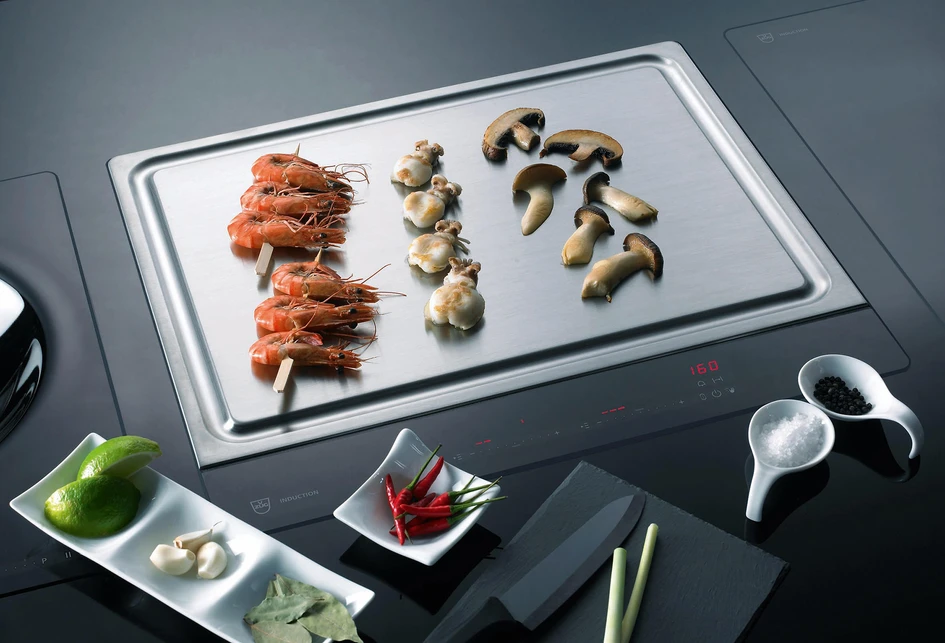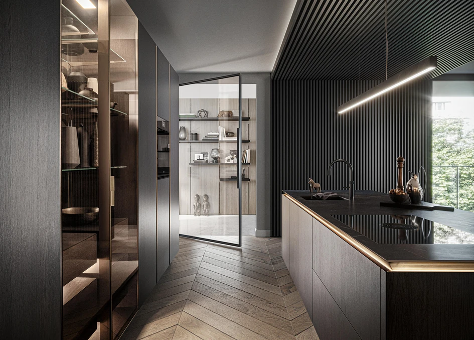 As the kitchen’s centrepiece, the eye is immediately drawn in to the kitchen island. While some choose to easily identify the island as kitchen space by blending it with the rest of the worktops and cabinetry, it’s also possible to highlight it with accent colours, materials and accessoriesStrikingly minimalist kitchen islands can be created with the inclusion of flush appliances such as V-Zug’s extractor range or Teppan Yaki cooking plates. Alternatively, visual intrigue can be created by positioning statement appliances like Olympia Express’s Maximatic espresso machine to the kitchen island’s cityscape.