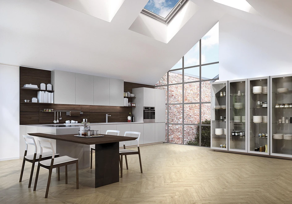 Even if there’s not enough space for an additional island, you may consider doing away with the wall-connected counters, altogether. By positioning this Filó kitchen island from Euromobil alongside slimmer shelving with no counter, the kitchen becomes bathed in space.Extra-large kitchen spaces