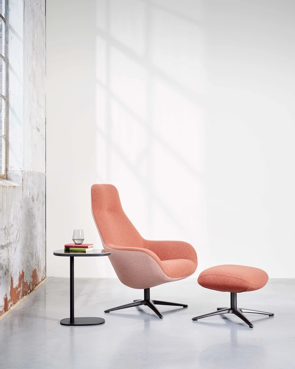 But the life-story of LXR10 is, again, one of customisation. With an oak or walnut plywood shell, fabric or leather upholstery – including eye-catching overlapping armrests – and a polished aluminium or epoxy swivel base, the LXR10, together with the rest of the Leolux LX range, can fulfil a contract designer’s most creative vision.