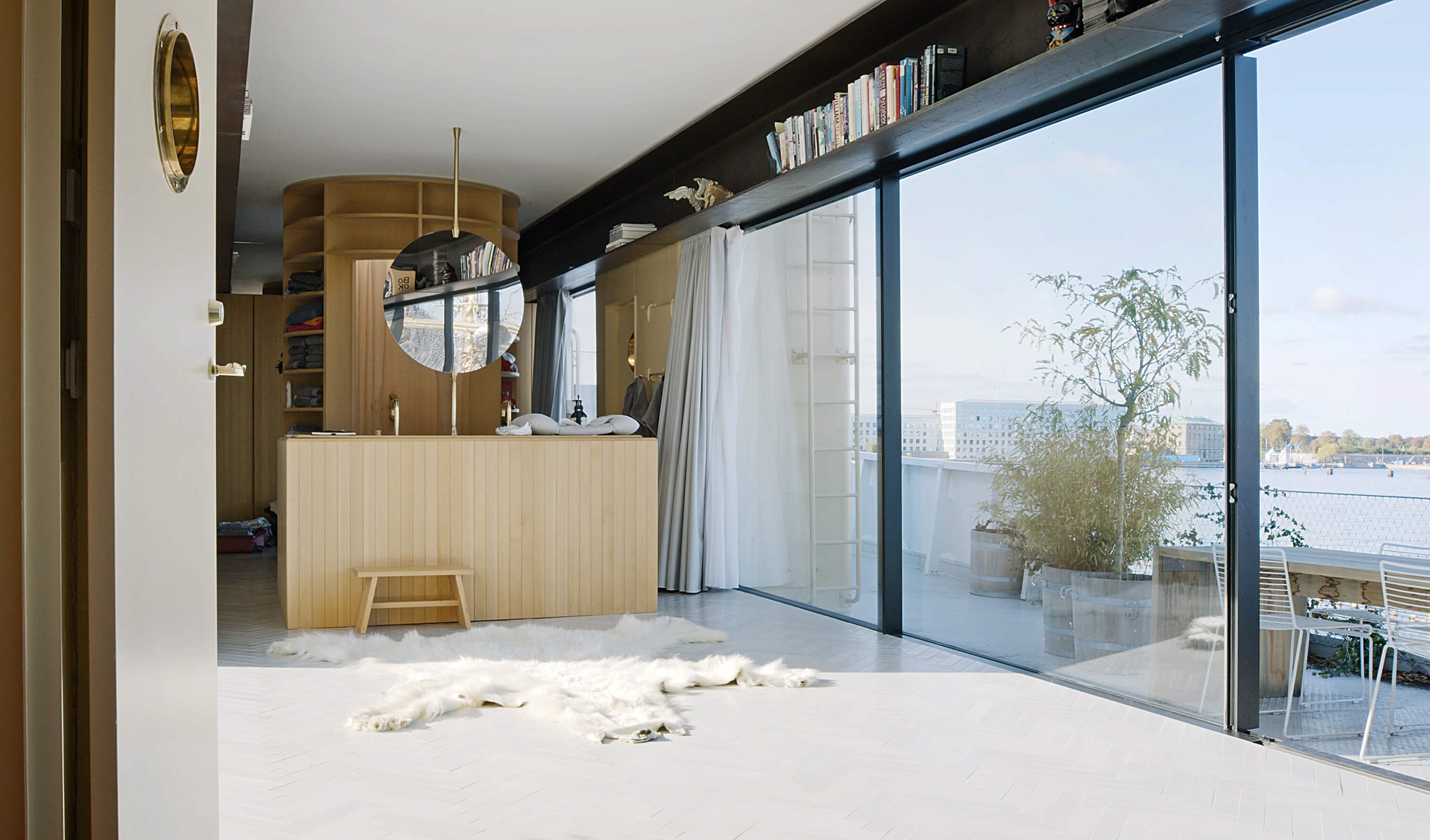 Another fact: our interview takes place in the loft-like living room of Bjarke’s 'house ferry', where an enormous window pane grants us sweeping views over the entire Port of Copenhagen. On the one side, the Copenhill power plant. On the other side, Amalienborg Palace. 'This sort of setting is impossible to find in the old town. Thanks to my ferry, we are at the heart of it yet surrounded by open space.' Having come across the old ferry by serendipity alone, he pragmatically realised his dream.