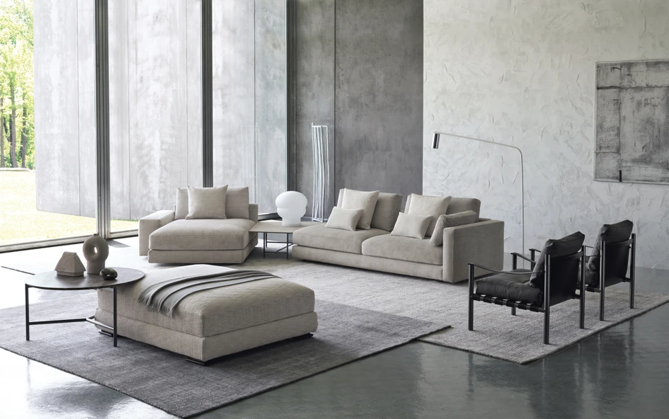 For 2019, Flou is taking a holistic approach to interior furnishings with its home collection. Drawing inspiration from the fabrics used in men’s tailoring, the textiles feature Prince of Wales checks and fabric designs inspired by Viennese raffias as jacquard patterns and micro designs more usually found in designs for neckties. These small details help create a distinctive aesthetic, combining robust, strong woven textiles with soft and luxurious textures.