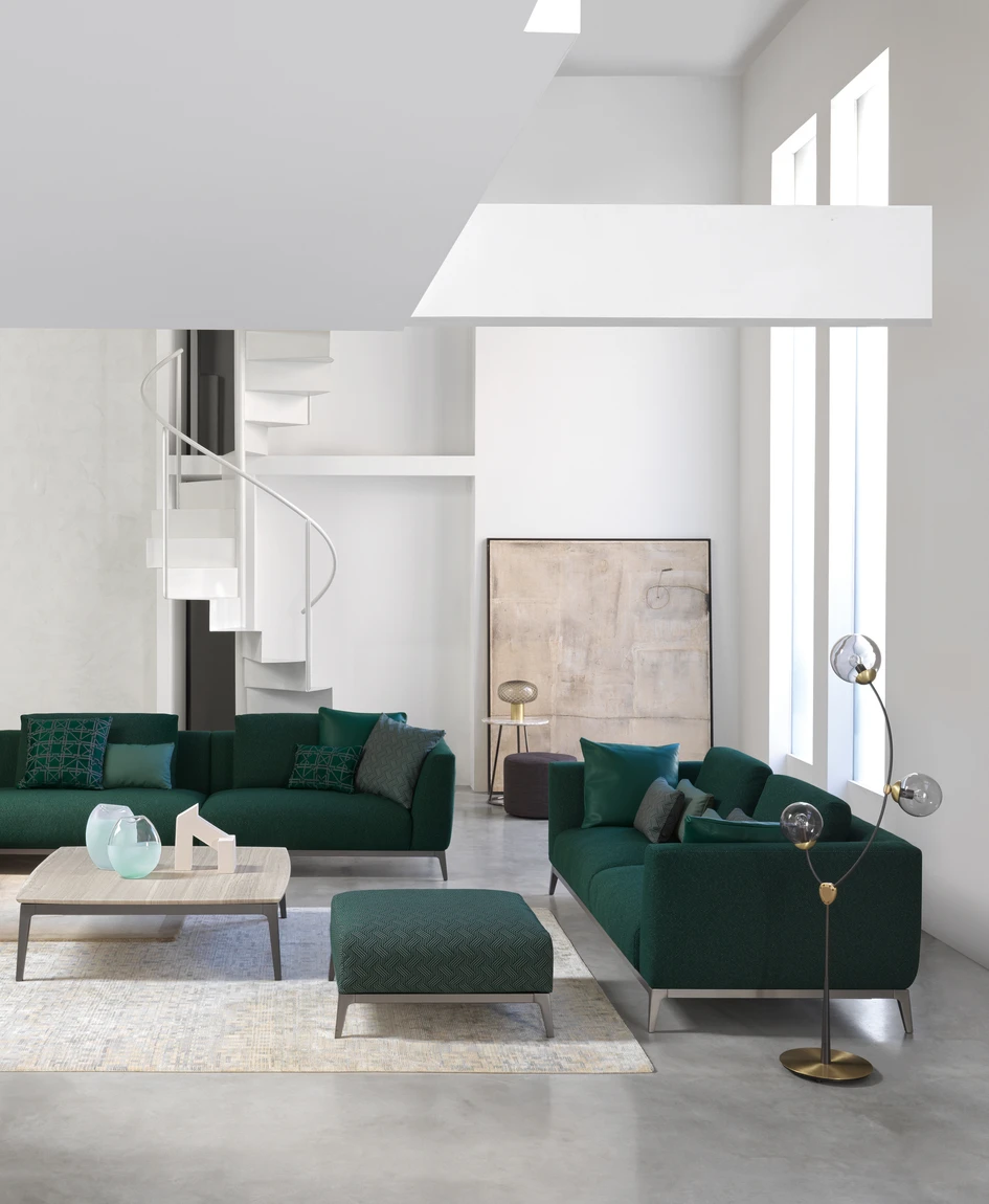 Founded in 1978 as a bed-focused brand, Flou has seen many colour trends come and go but has remained steadfast in its commitment to innovation when it comes to combining textiles and furniture design.