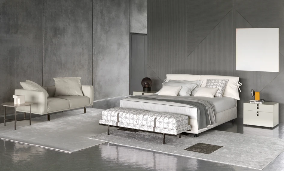 The company cemented its reputation with ones of its very first product releases – the Nathalie bed designed by Italian designer Vico Magistretti. With its distinctive bows, the bed was the first of its kind to feature a removable textile cover. With Nathalie and its successors, Flou played a significant role in transforming the concept of the bedroom, from a static place to sleep into a sanctuary within the home.