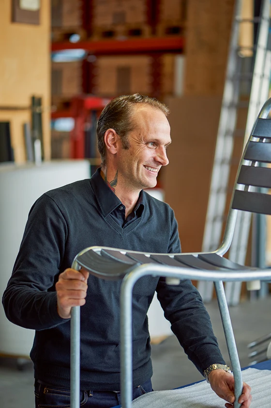 In Heimberg, the individual components are only put together. “But we take great care to ensure that the individual parts are produced and finished in the region wherever possible. The ash slats for the garden chairs, for instance, are cut to size in Brienz in the Bernese Oberland, and the tabletops are powder coated at a factory near Thun. It’s very important to us that as much Swiss craftsmanship as possible goes into our products,” says Manfred Jerney, who was production manager at Atelier Alinea AG for 17 years before taking over as director in September 2016.
