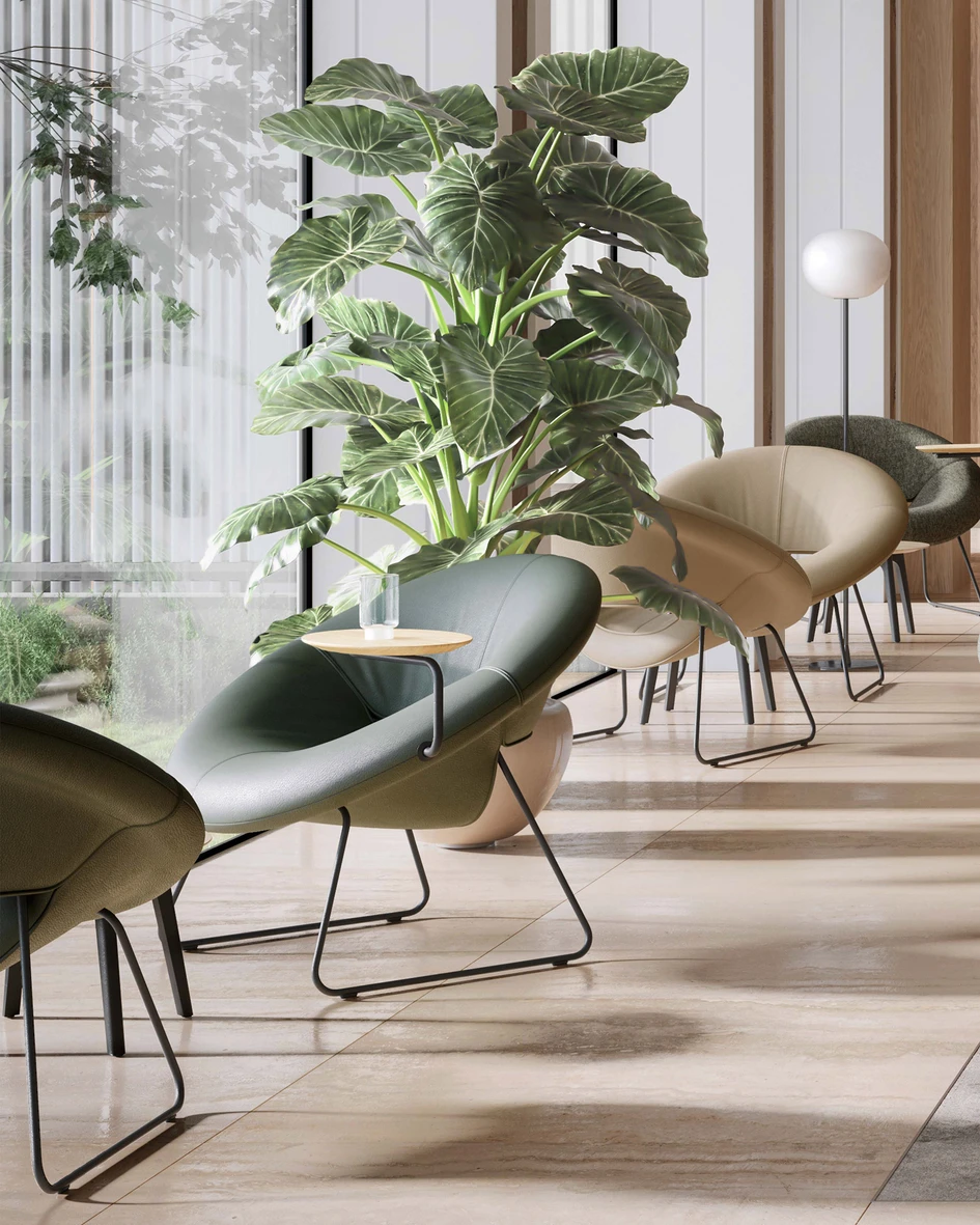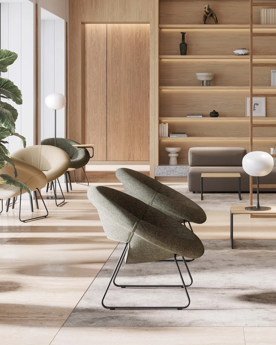 With more contract design briefs asking for ‘homes away from home’, Leolux LX’s smiling LXR18 chair – with its optional and functional oak writing tablet and compact, lightweight form – is designed for contract sitting with living spaces in mind, creating comfort-first settings for office, hospitality and public environments.