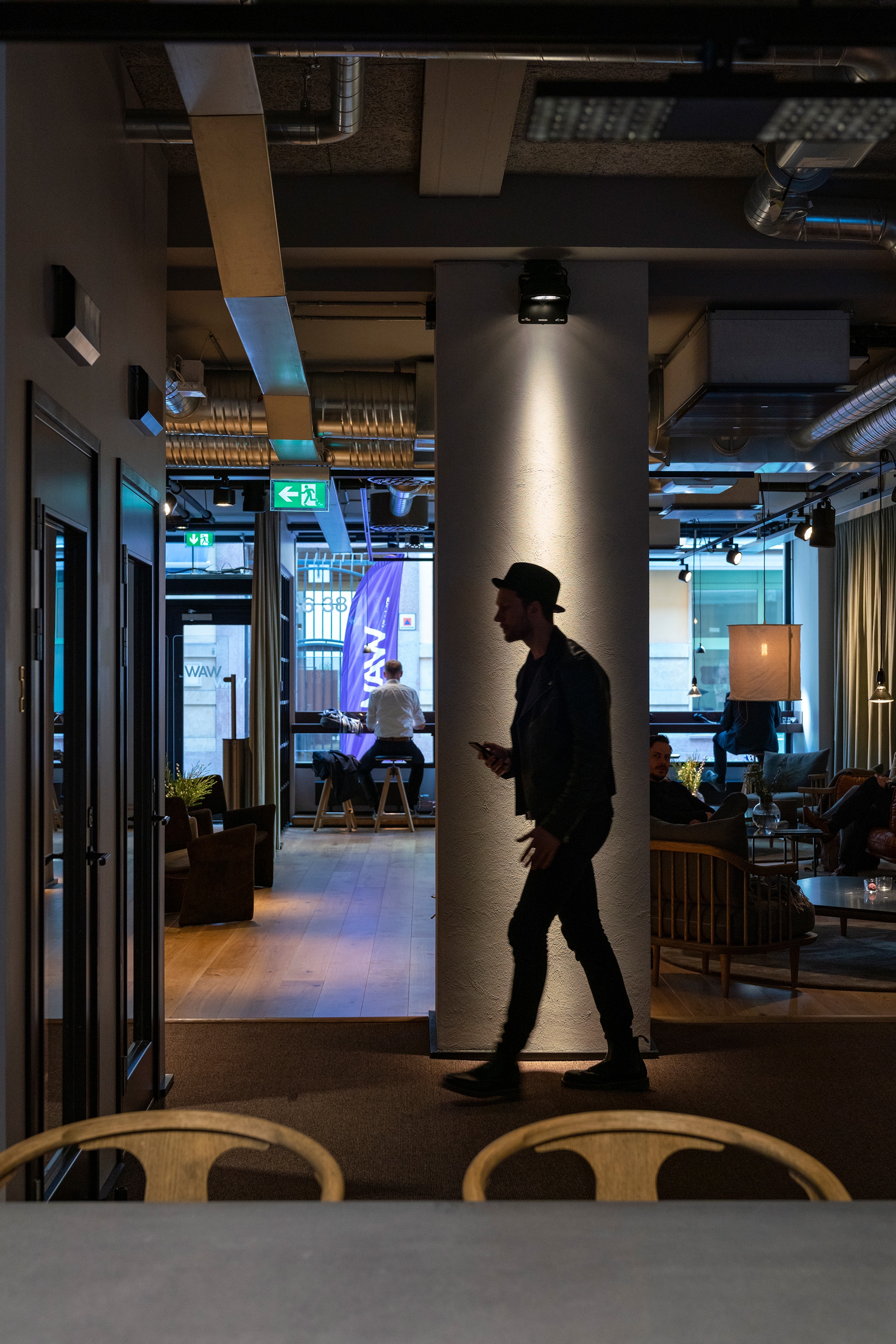 Each WAW site has its own character. WAW Arenastaden in the north of Stockholm is a loft-like office on two levels. It offers space for concentrated work and cosy discussions around a fireplace. The Inner City location is in the city centre and approximately 450 metres away from the main railway station. The lounge ambience is the ideal backdrop for a get-together, business meetings or creative brainstorming with colleagues. WAW Hammarby Sjöstadt, located in the south of Stockholm, is housed in a historic building with light in its DNA: the Luma factory manufactured incandescent lamps from the 1930s to the 1970s. People now work there below ERCO light with state of the art LED technology. This largest location offers space for single or group work as well as open lounge areas.