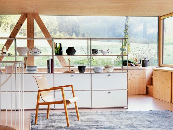 Few companies’ DNA is as distinctive as that of USM. Hardly surprising, given that the modular furniture system has always remained faithful to the original blueprint by designer and architect Fritz Haller and, while it has certainly evolved over the years, has never radically changed. As a result, the chrome-plated ball joint that was devised in 1963 is still the heart of USM’s furniture systems to this very day.