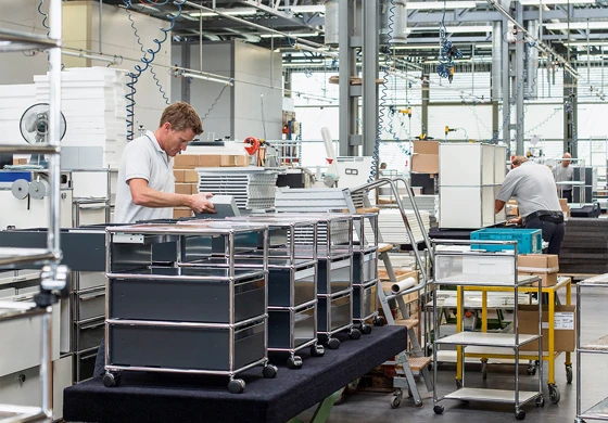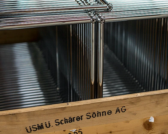 The focus was on developing a timeless design and a modular construction system that adapts to its users’ changing needs. And that basic idea is still proving its worth today. In 2007, USM earned the Greenguard Indoor Air Quality certificate in the Furniture Systems and Tables category for its USM Haller and USM Kitos systems. The label is an internationally recognised “green guideline” and signifies that the two products release only very small amounts of emissions into the air. That reduces air pollution in homes and offices and helps create a healthier indoor climate. What’s more, USM furniture can be almost completely recycled should the need arise. The majority of the raw materials are sourced from Switzerland and processed entirely in Münsingen, where the furniture is assembled entirely by hand for inland transport or pre-assembled into smaller, transportable units for global shipping. What is made by machine is put together individually by people. “The human touch is still our best form of quality control,” says Alexander Schärer, president of the board of directors and CEO of USM. “Every single part is picked up and examined multiple times.”