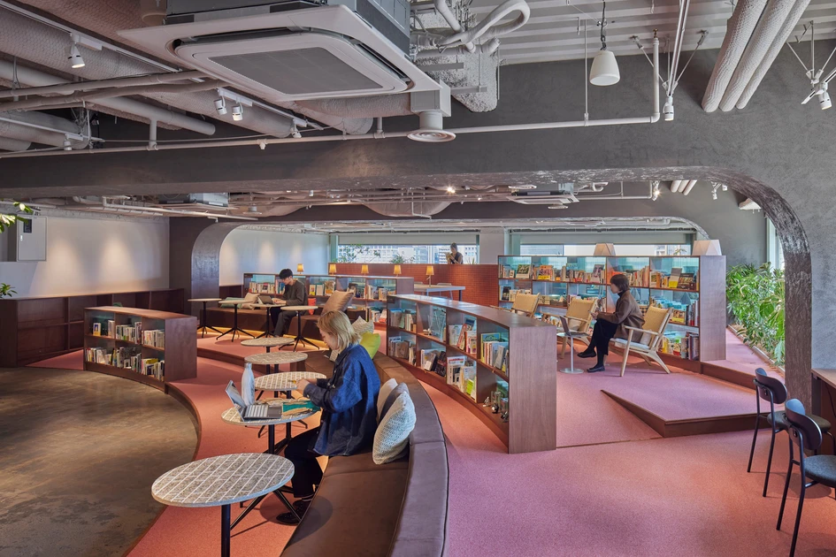 In opposition to monastic libraries that enforce and encourage silence with a combination of acoustic surfaces and power-hungry librarians, the library set within the offices of the Nippan Group (an online literary wholesaler) in Tokyo, wanted to create the opposite effect: a library that actually encourages readers to speak to one another.A library that encourages readers to speak to one another