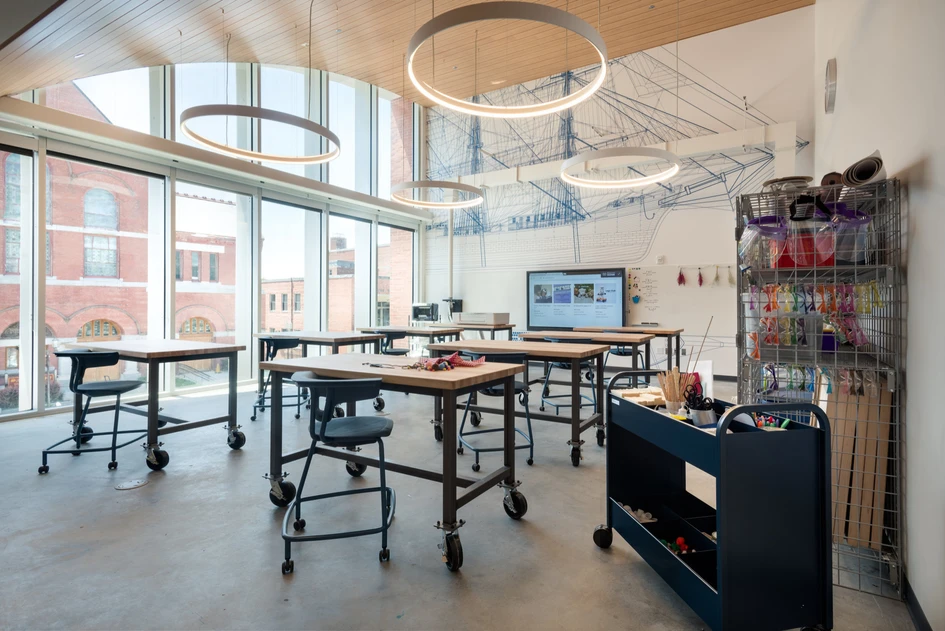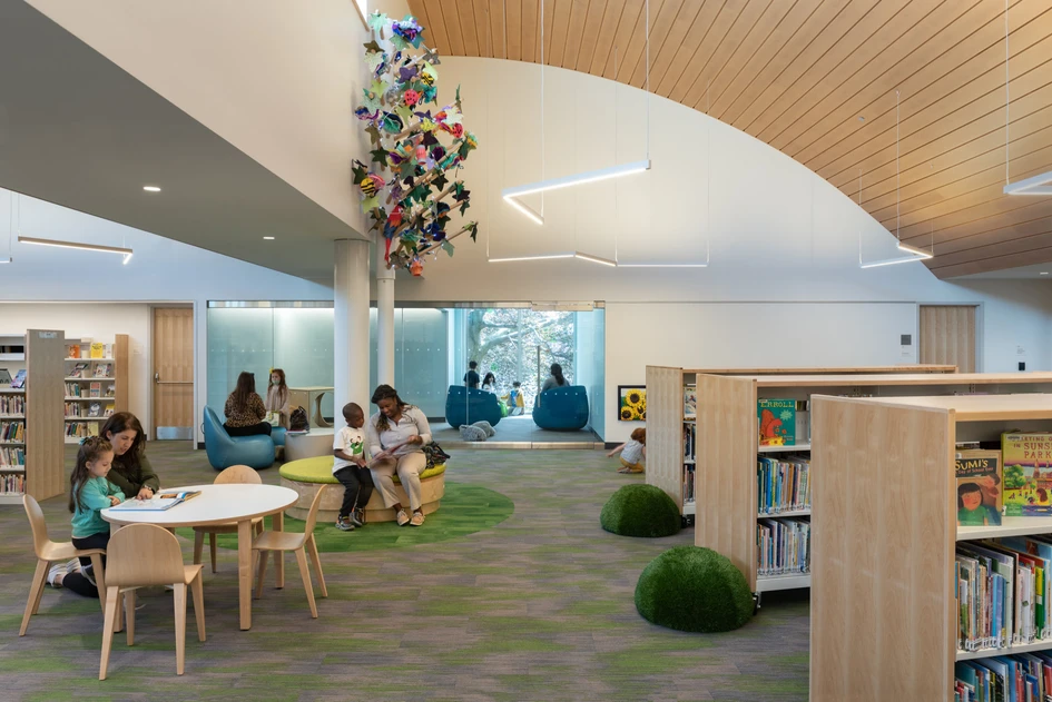With ‘dedicated areas for programmes and events for each age group’ and ‘an array of spaces for the public to meet and collaborate,’ as its architects Schwartz/Silver Architects explain, the Charlotte & William Bloomberg Medford Public Library is ‘much more than a repository of books.’ By lining its curved ceilings with perforated acoustical planks and keeping its various spaces for different groups acoustically separated, the library provides flexible spaces that can be kept – but don’t need to stay – quiet.‘Much more than a repository of books’