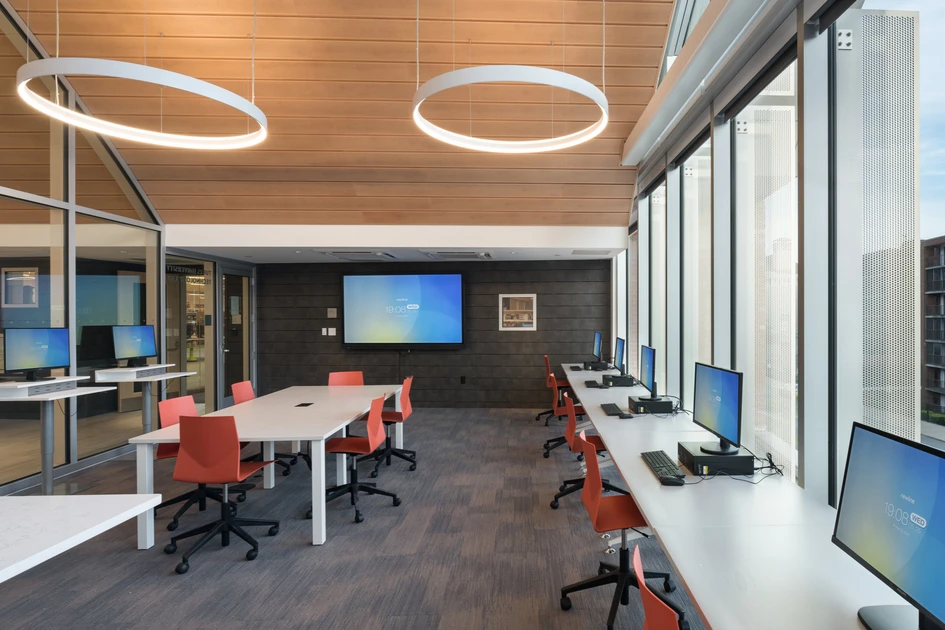 For example, musicians can reserve group study rooms to practice together alongside quiet alcoves where local business owners can focus. Amongst the many other community activities the building is able to support are computer learning for adults, podcast recording for seniors, cupcake decorating and poetry contests for teenagers and story time for children.