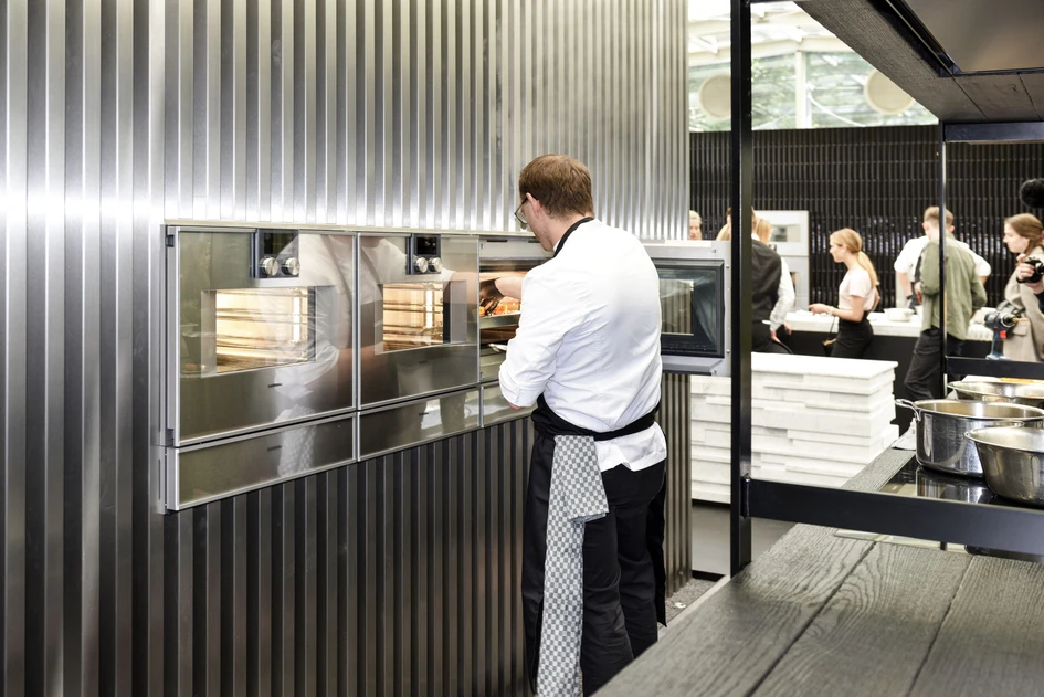 Though the talks were broadcast around the world via a live stream, an in-person visit was mandatory in order to taste the culinary heights possible with appliances from Gaggenau. Christian Jürgens – chef of the three-Michelin-star restaurant ‘Überfahrt’ at the Althoff Seehotel on Lake Tegernsee and long-standing partner of the premium manufacturer – was invited to oversee the daily cooking events.Christian Jürgens impressed not only with his compositions from the world of haute cuisine, but also with his great talent for entertainment