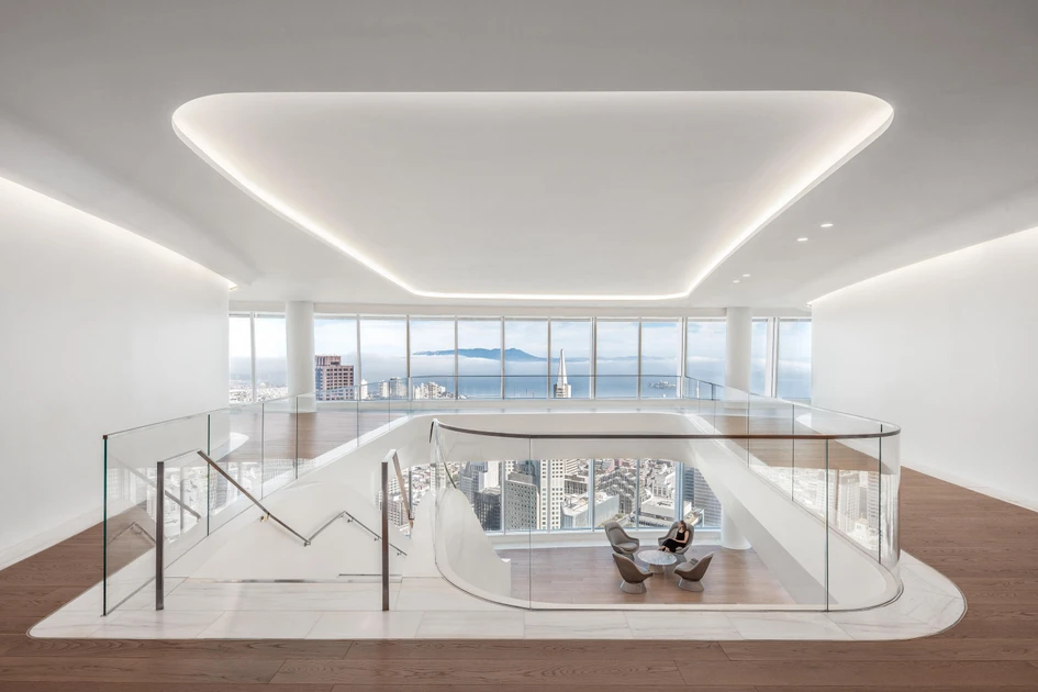 Atmosphere is also important in Covington's LSM-designed San Francisco office. Located in the city's recently completed Salesforce Tower, the interior lighting was designed by FMS | Fisher Marantz Stone. The all-white interior is in perfect harmony with the glazed facade, and the lights – recessed within curved ceiling impressions that follow the architecture of the building – fill the space with a white, almost ethereal light.