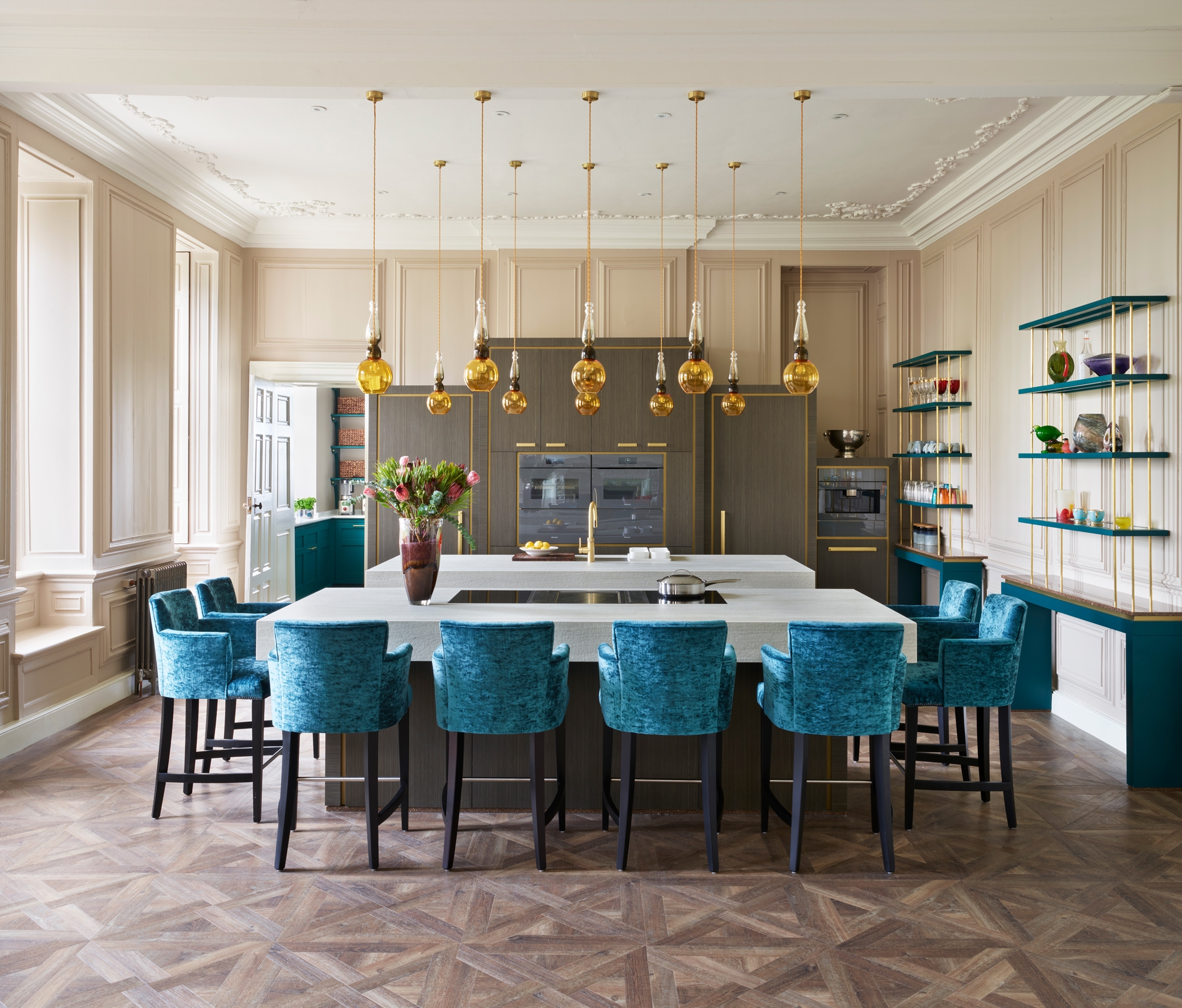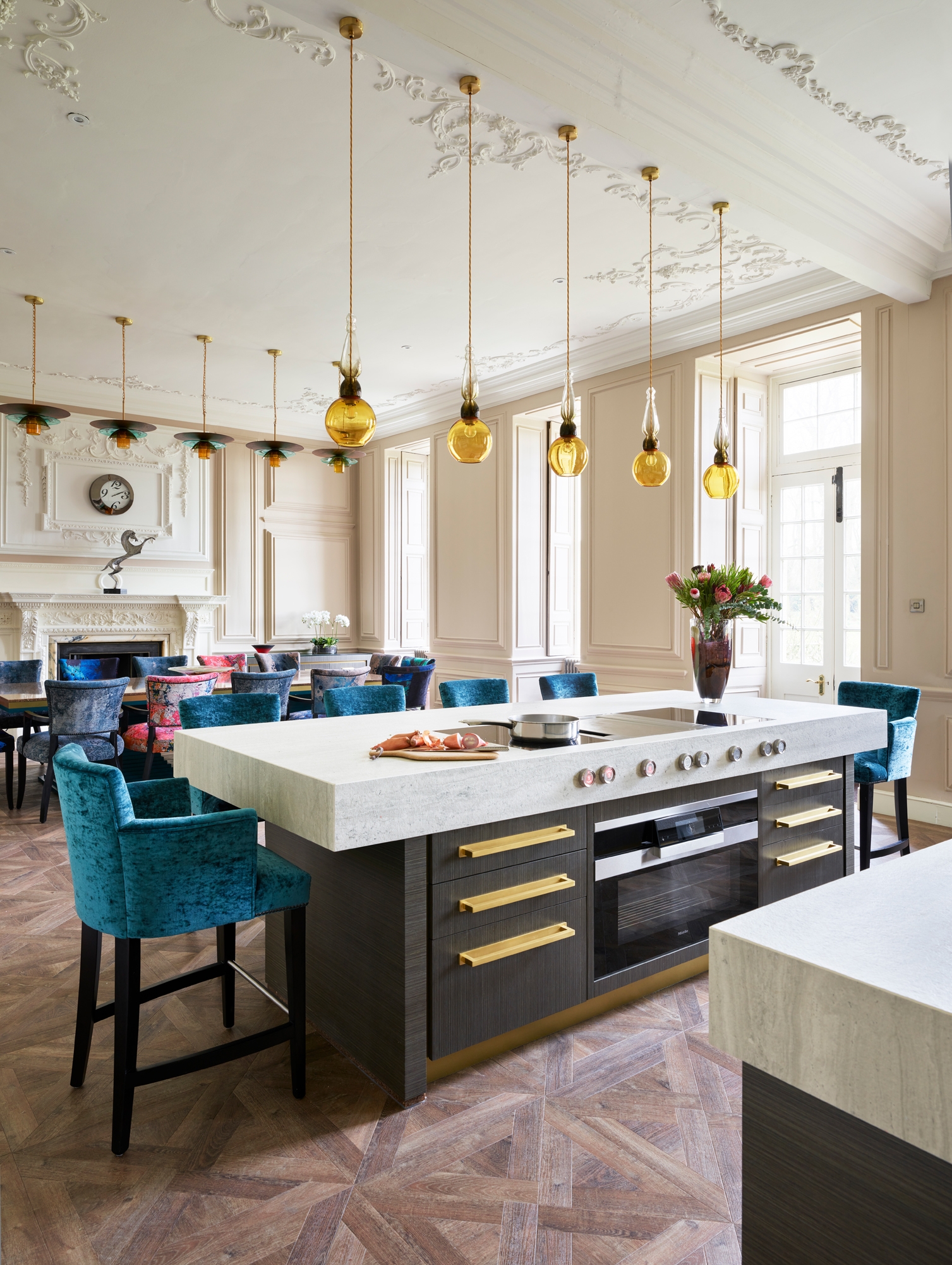 Le istruzioni erano chiare: da un lato i clienti volevano conservare i dettagli risalenti per la maggior parte al XVIII secolo, come gli ornamenti in stucco sul soffitto, i rivestimenti delle pareti, i camini in marmo, le persiane e le porte originali. Dall'altro volevano però anche un ambiente pratico, adatto alle cene di famiglia informali e alle serate in compagnia degli amici. La soluzione di Holliday: "Tutti i mobili sono autoportanti e fissati con poche viti. Perché pensavo fosse sbagliato interferire in uno spazio creato tanto tempo fa. Non volevo danneggiare nulla".