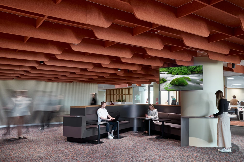 “As designers, we really appreciate the way Woven Image embraced more complex ways to work with EchoPanel. The ability to retrofit ceiling tiles and acoustic blades to the existing t-bar ceiling framework was a gamechanger. Their thorough and meticulous shopdrawing process gave us a lot of reassurance that the design vision would be executed beautifully. The technical team from Woven Image worked collaboratively with us and alongside other contractors to ensure a seamless result.” - Daniel Stanning, Associate & Senior Interior Designer at Architectus.