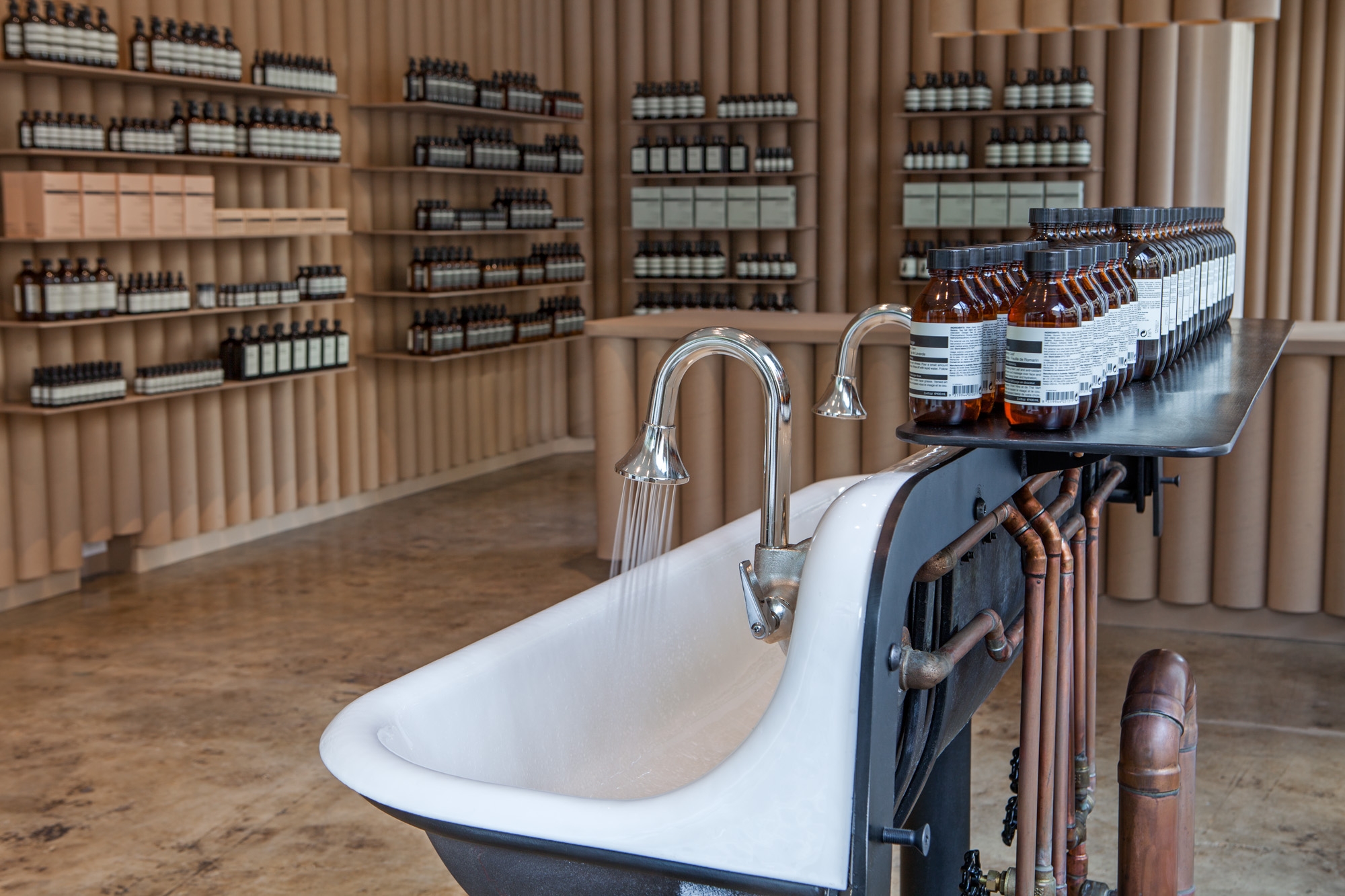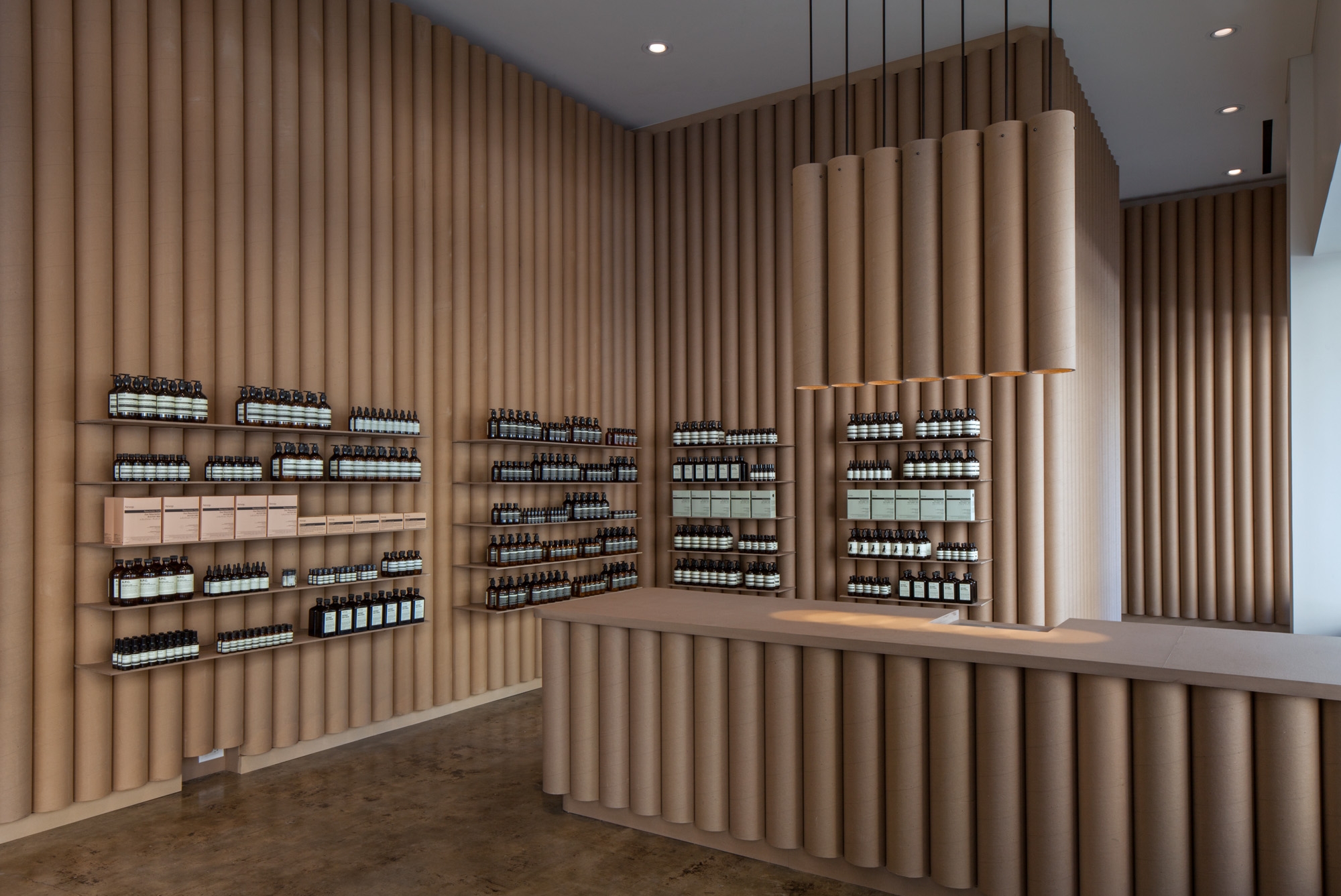 Nestled in the ground floor corner of the 1929 Eastern Columbia Building, Aesop Downtown, the company’s largest store to date, is situated in Los Angeles’ historic theatre district, at the edge of its Fashion District and adjacent to the famous Orpheum Theatre.