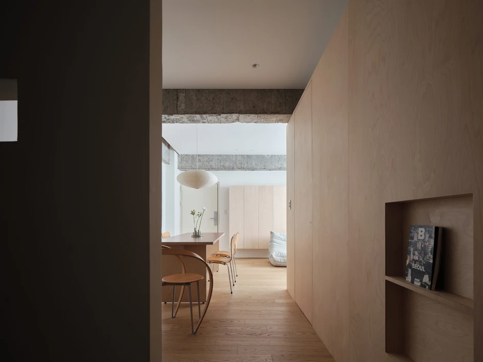 Rather than excessive coverings or embellishments, the space embraces raw materials, allowing its natural textures and traces of time to become part of the aesthetic. This approach reduces resource waste while maintaining the possibility for future expansion or deconstruction.