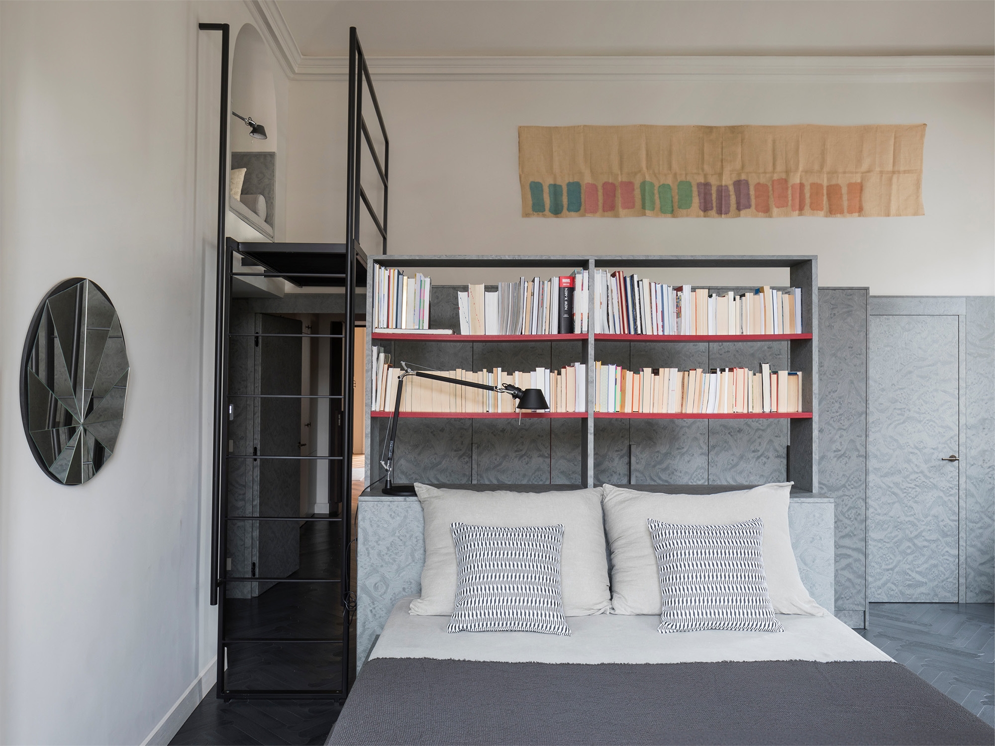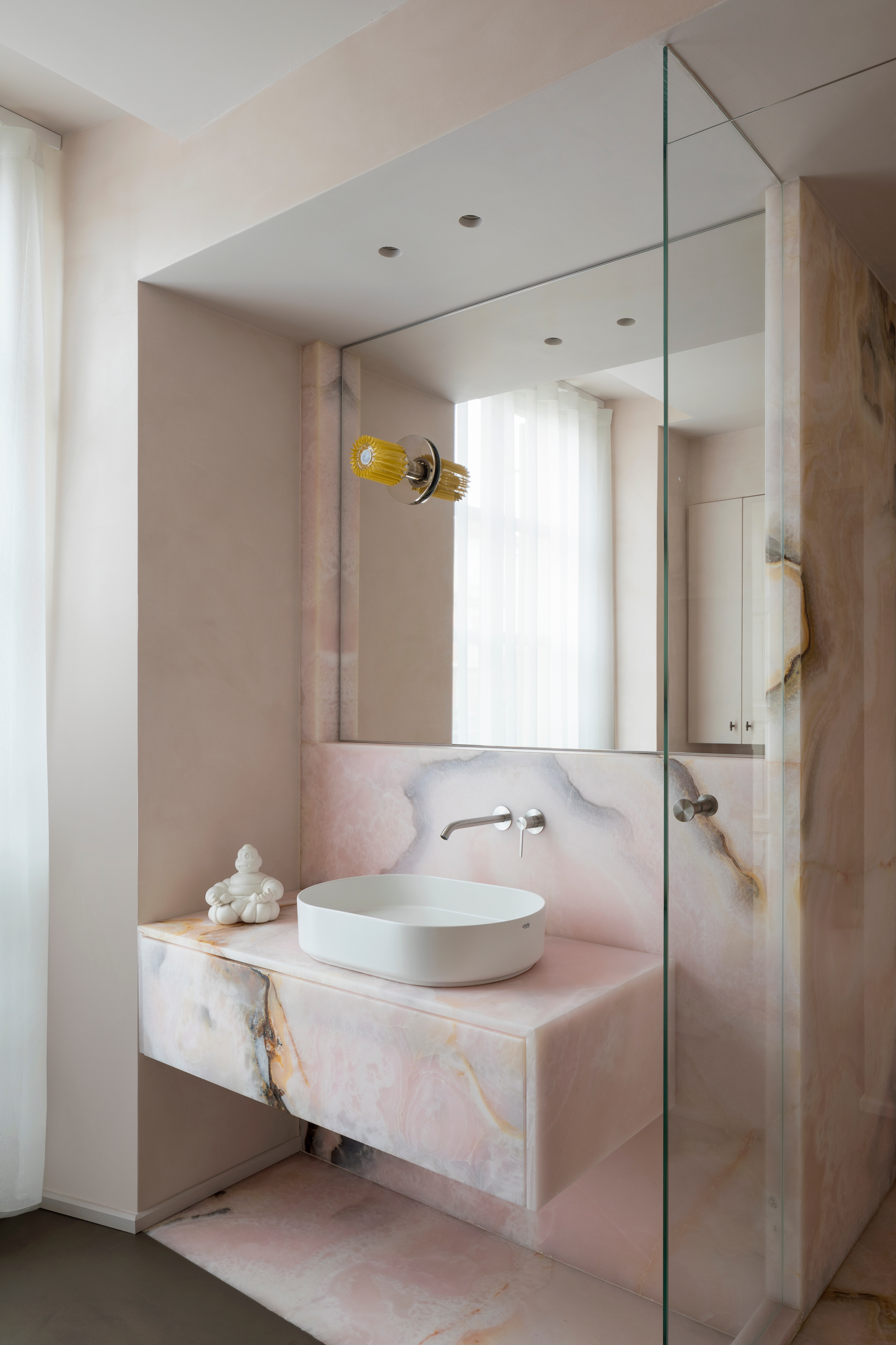 In the dining area and bathrooms, all the versatility of marble’s expressive potential unfolds, with surprising colours and refined cuts. In the bedrooms, different spatial solutions are experimented and defined, through the design of an articulated system of custom-made furnishings.