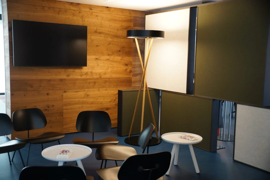 The path led from the shaky first prototype with legs that were too long and thin to a standing lamp with stable round rods made of oak, in which a cable duct elegantly hides the connection cables. And that's how the lights stand and shine in the Basler Kantonalbank today.
