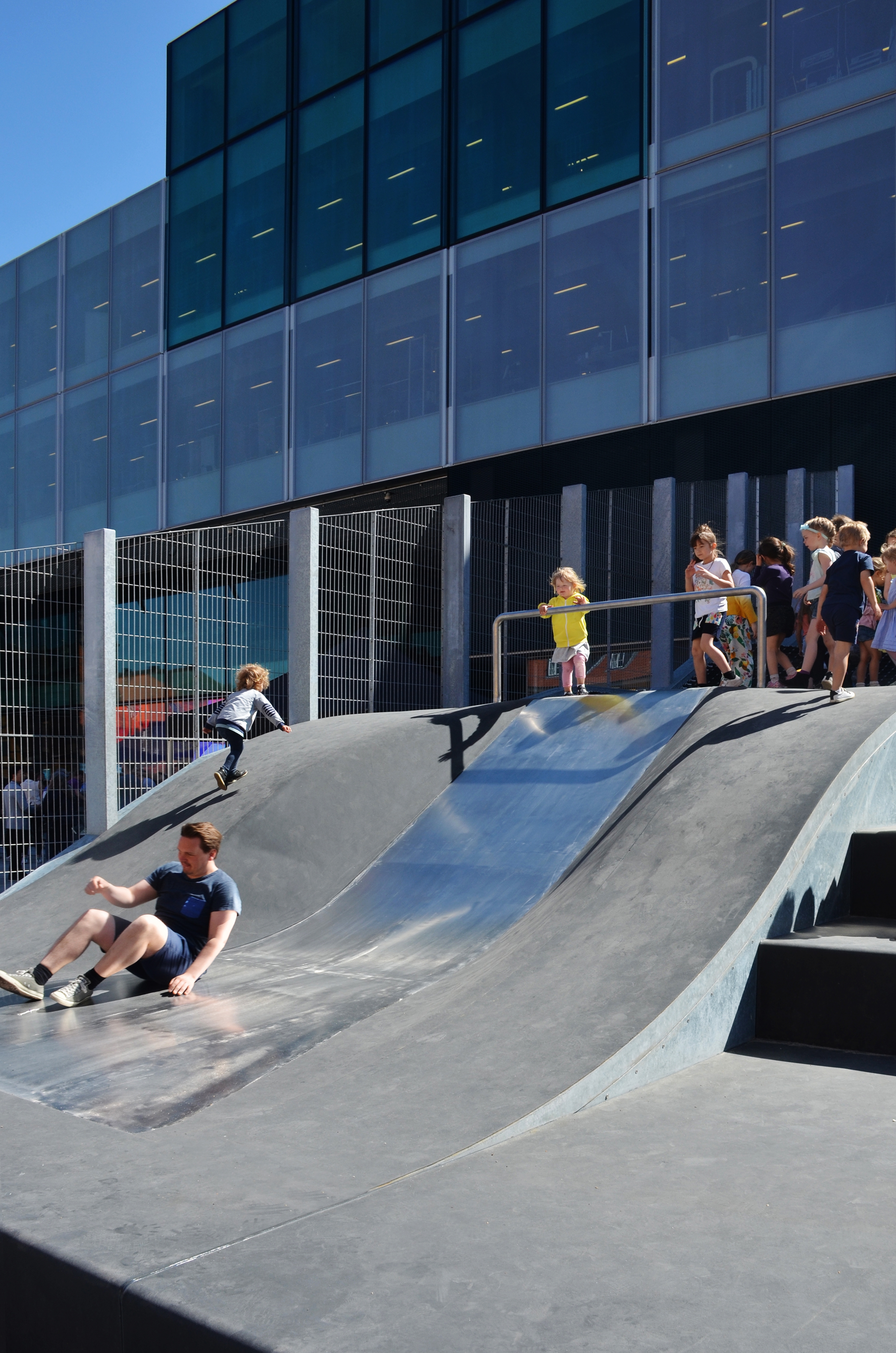 Part of the complex is a publicly accessible, playable staircase, that carve and designed in collaboration with OMA. Apart from the playable tribune, Carve also designed a bespoke play structure and a sports field, which were specifically designed for this location. This playscape contributes to the liveliness of the harbourfront of Copenhagen and works as a catalyst for this very urban public space.